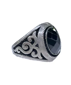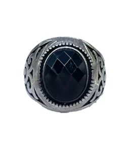 انگشتر بچه گانه نقره با نگین عقیق مشکی onyx