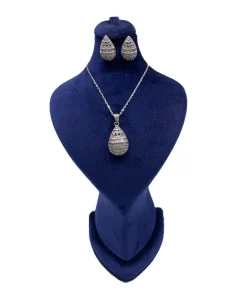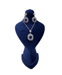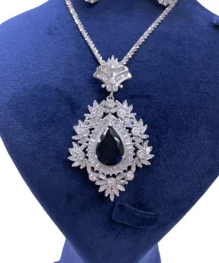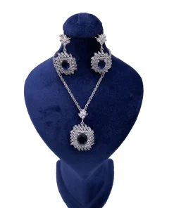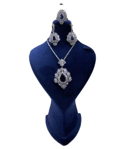 نیم ست زنانه نقره طرح جواهر نگین آبی کبود