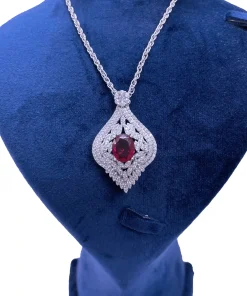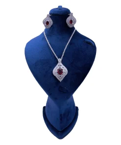 نیم ست زنانه نقره طرح جواهر نگین قرمز مدل لیلیا