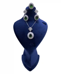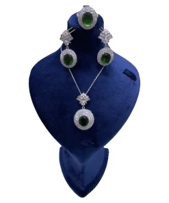نیم ست زنانه نقره طرح جواهر نگین سبز مدل gohar tash
