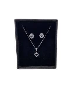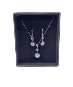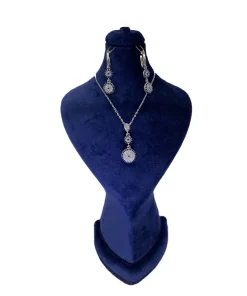 نیم ست زنانه نقره طرح جواهر نگین سبز