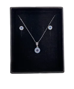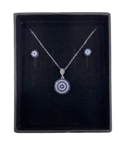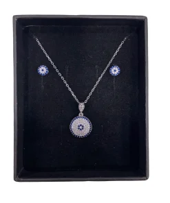 نیم ست زنانه نقره چشم نظر درشت کبود شکوفه