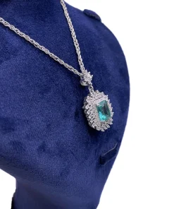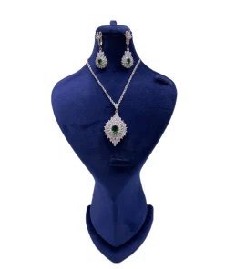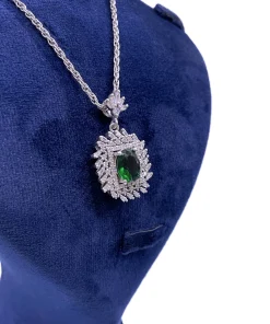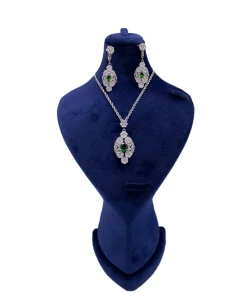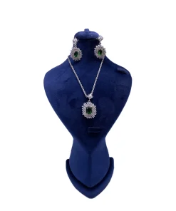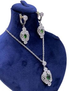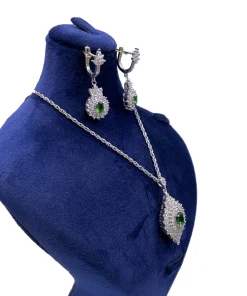 نیم ست زنانه نقره طرح جواهر نگین سبز
