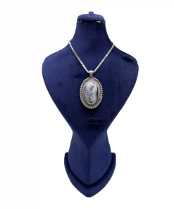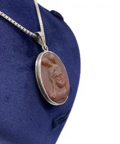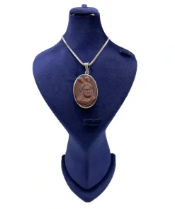 آویز نقره مردانه با سنگ عقیق قهوه ای طرح شمایل امام حسین