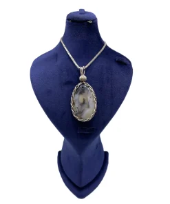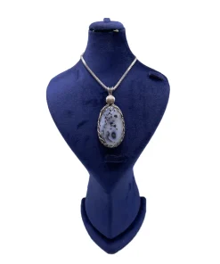 آویز نقره مردانه سنگ شجر مدل دورچ