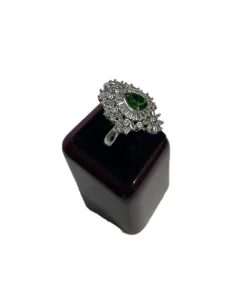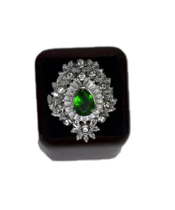 انگشتر زنانه نقره همراه با نگین اتمی سبز و اتمی سفید مدل سوفی