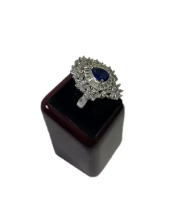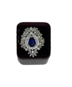 انگشتر نقره زنانه طرح عثمانی با نگین های سفید ریز اتمی و تخمه قرمز تراش اشک