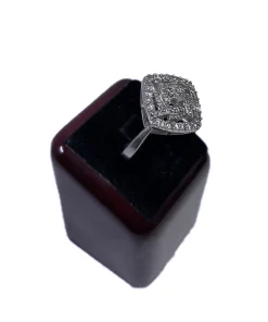 انگشتر نقره زنانه طرح عثمانی با نگین های سفید ریز اتمی و تخمه مشکی