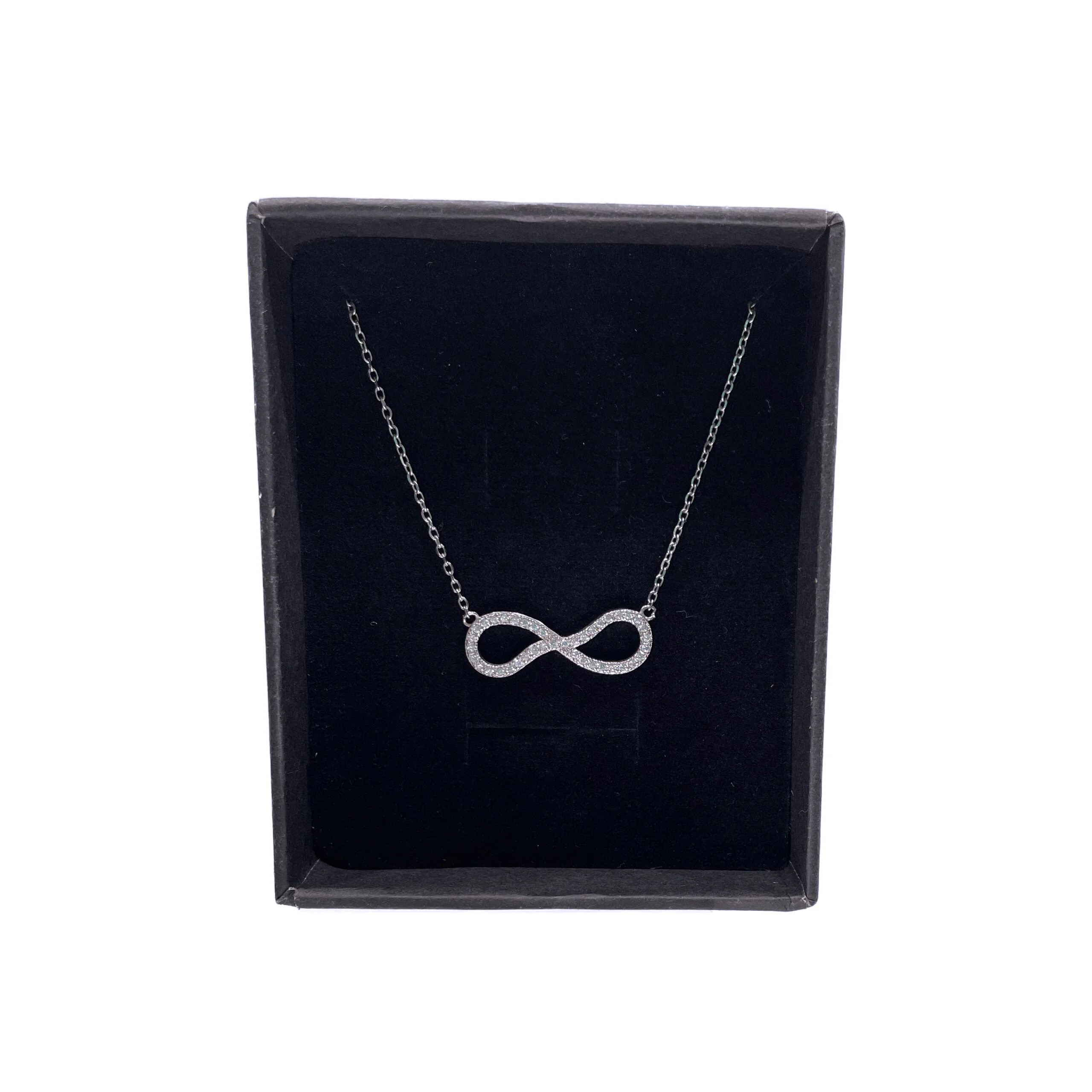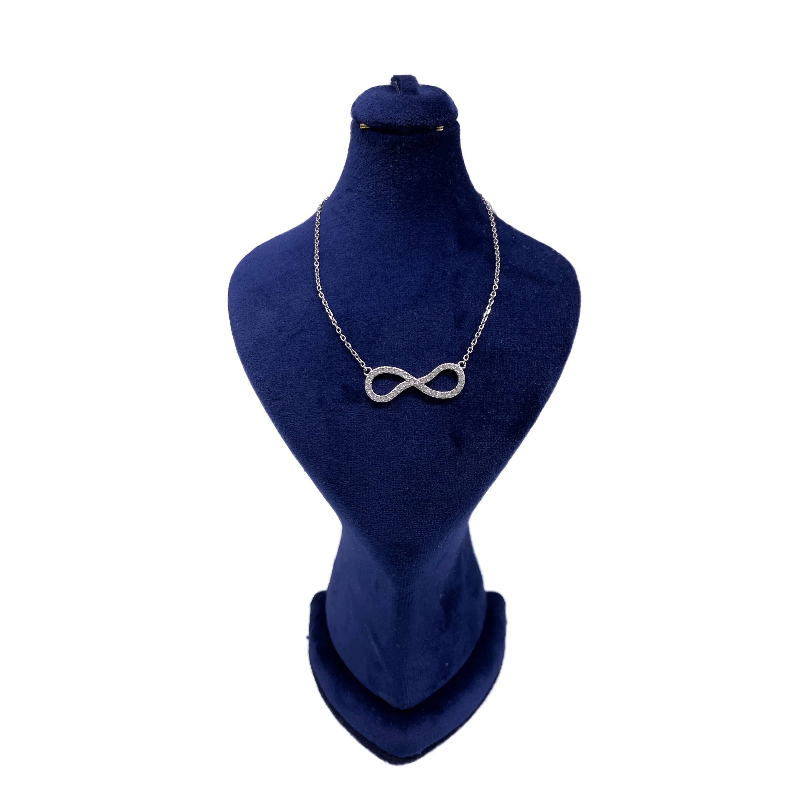 آویزه زنانه نقره بی نهایت نجیر سر خود که به همراه زنجیر که به سایز های ۴۵ تا ۴۰ سانت متغیر میباشد همراه با پوشش آب رادیوم و کیفیت بسیار عالی و نگینهای اتمی سفید