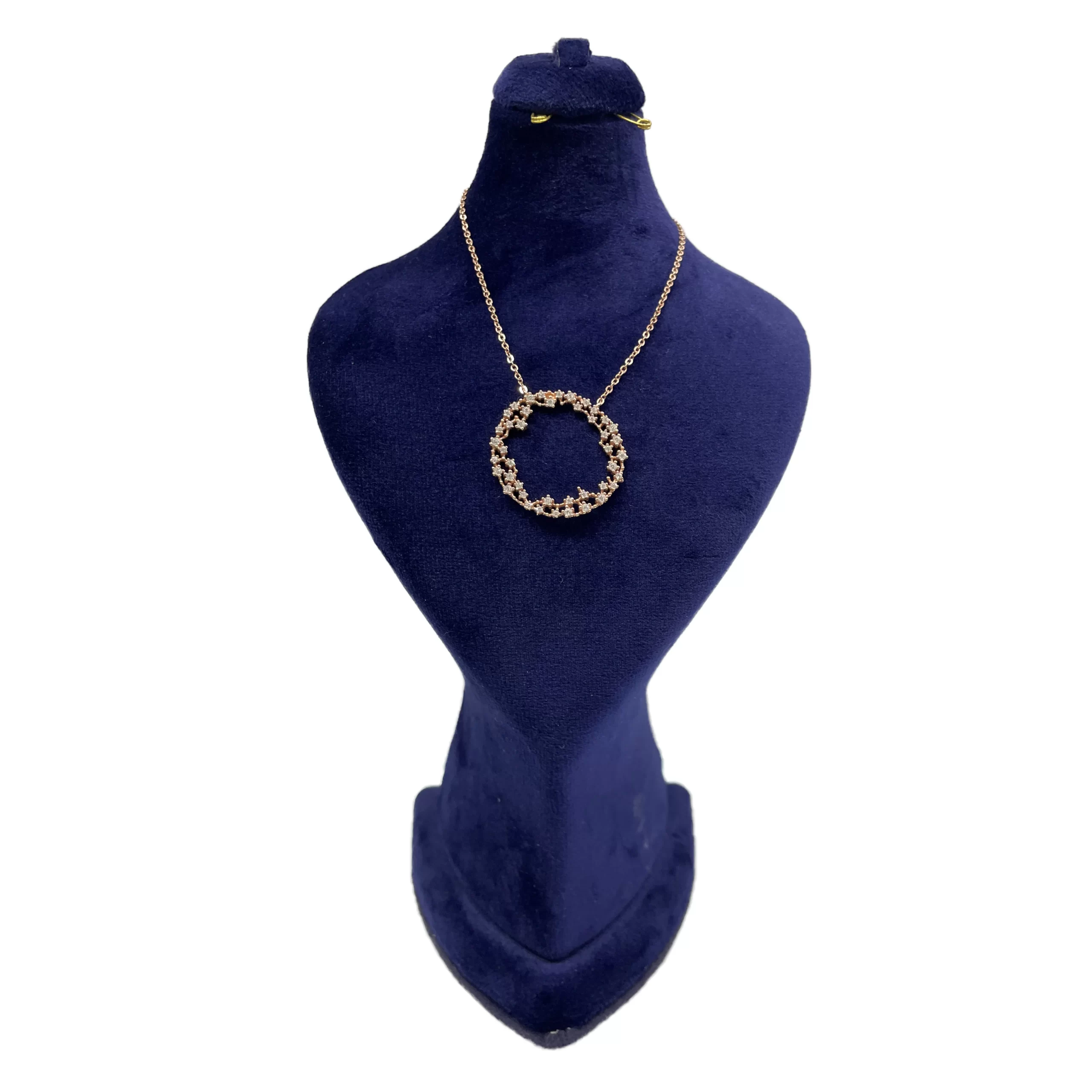 آویزه زنانه نقره سولینا رز گلد که به همراه زنجیر که به سایز های ۴۵ تا ۴۰ سانت متغیر میباشد همراه با پوشش آب رزگلد و کیفیت بسیار عالی و نگینهای اتمی سفید