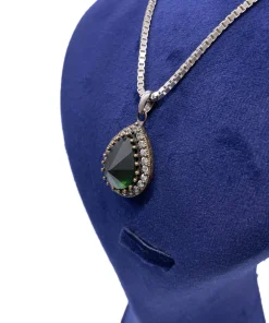 آویز زنانه نقره عثمانی با تخمه سبز همراه با نگین های اتمی سفید بدون زنجیر