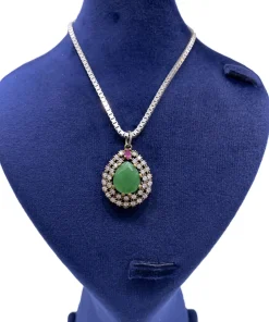 آویز زنانه نقره عثمانی با تخمه سبز مدل خرم همراه با نگین های اتمی سفید بدون زنجیر