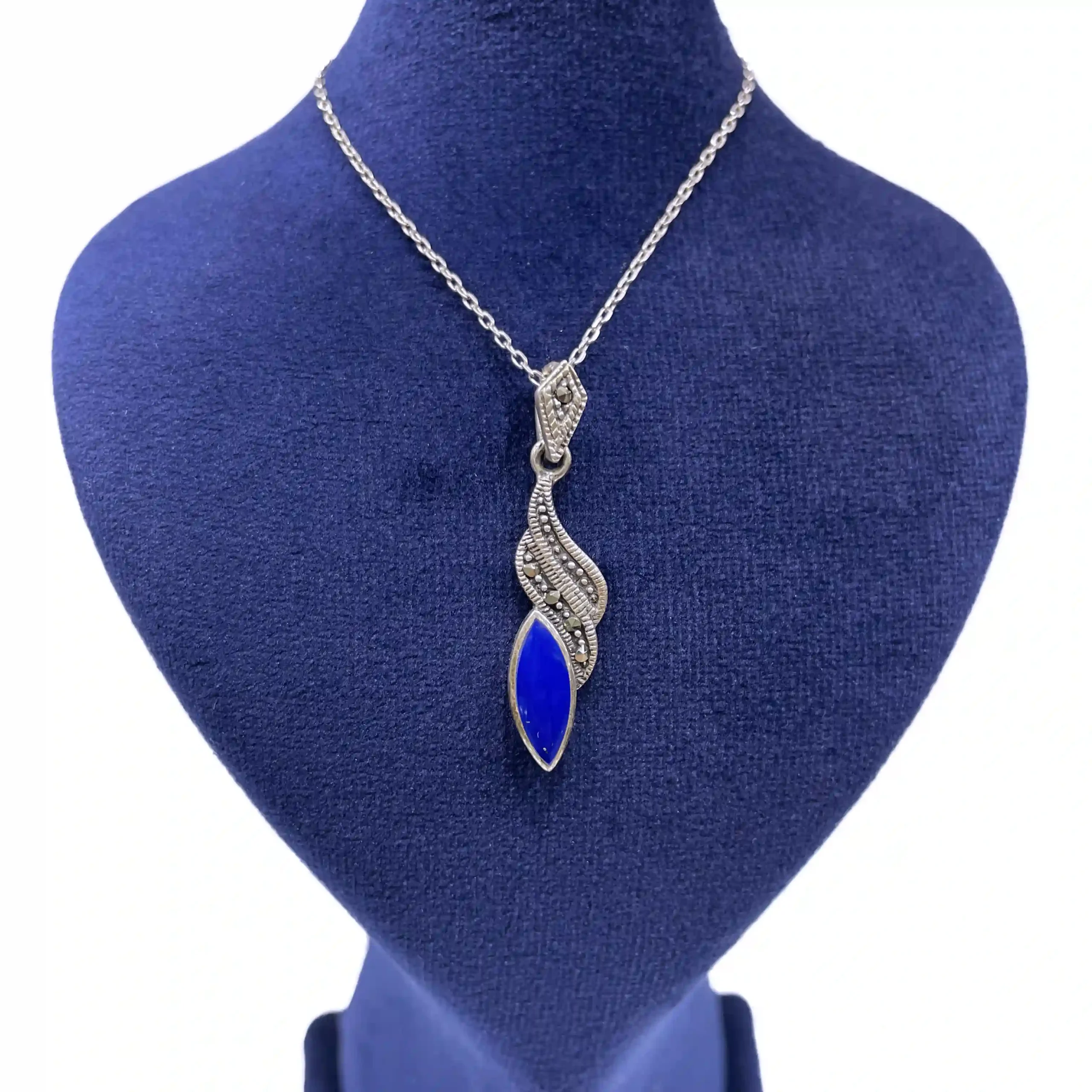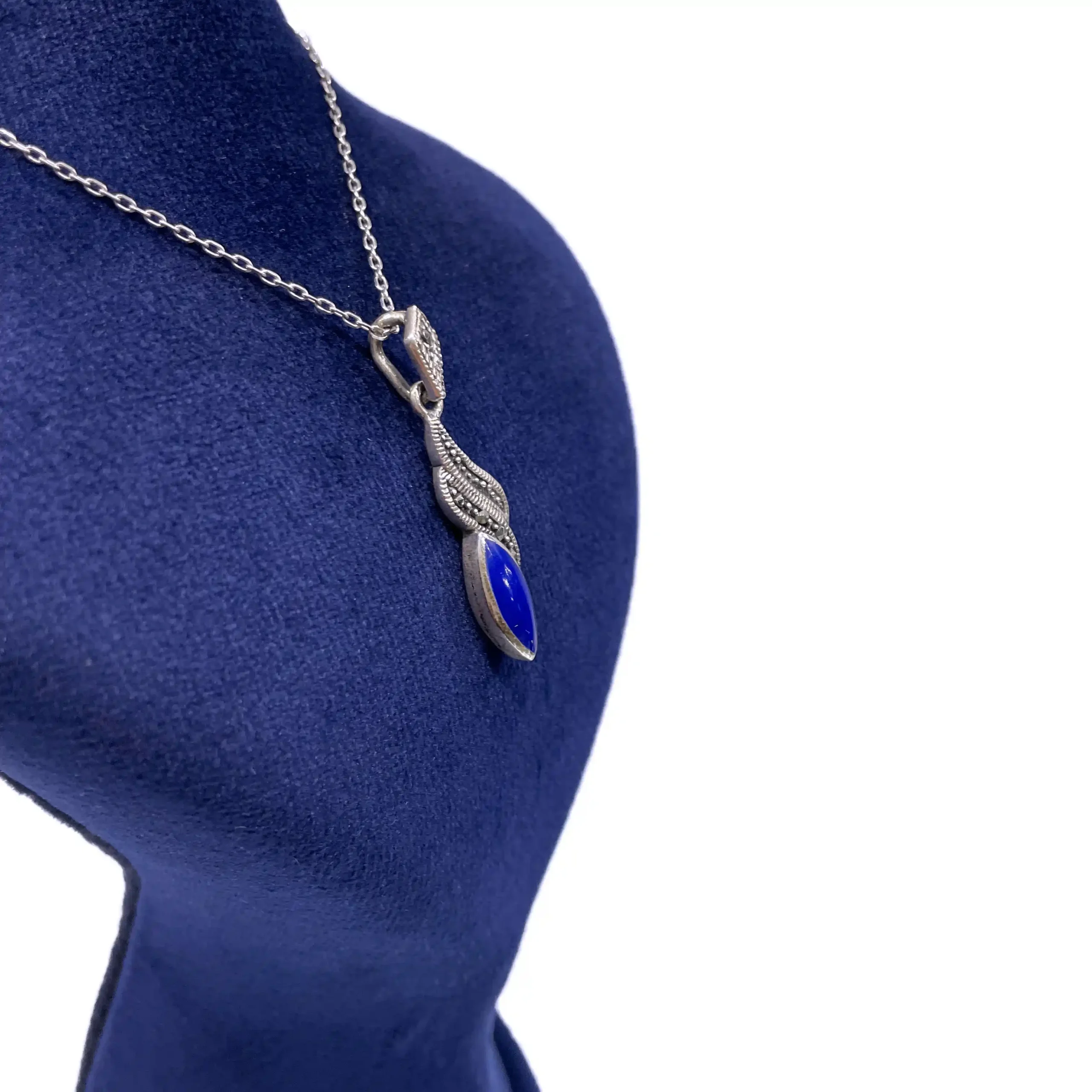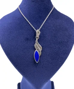 آویز زنانه نقره مارکازیت با مینا آبی لاجوردی