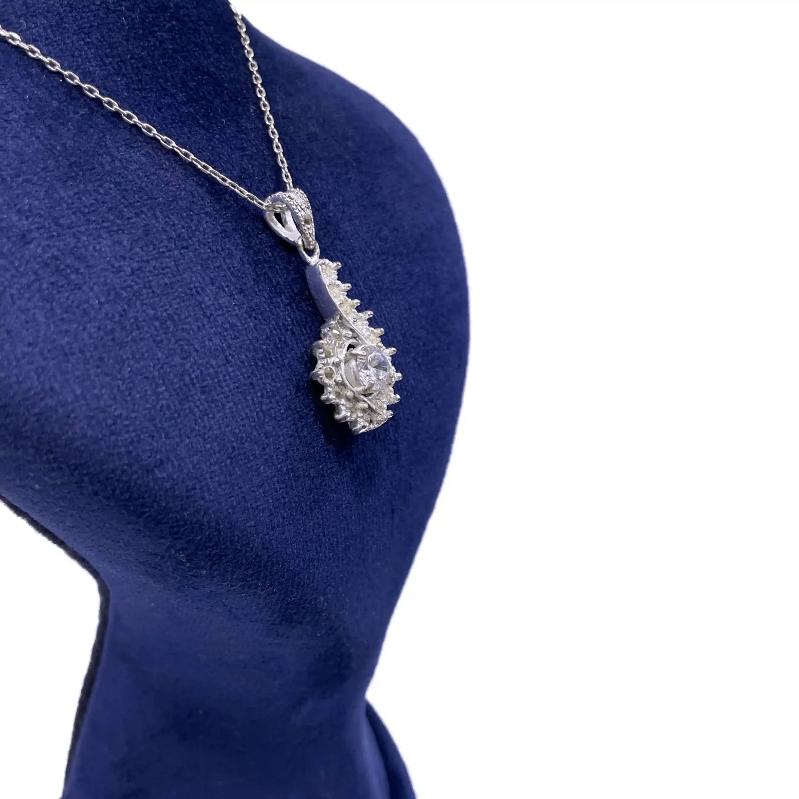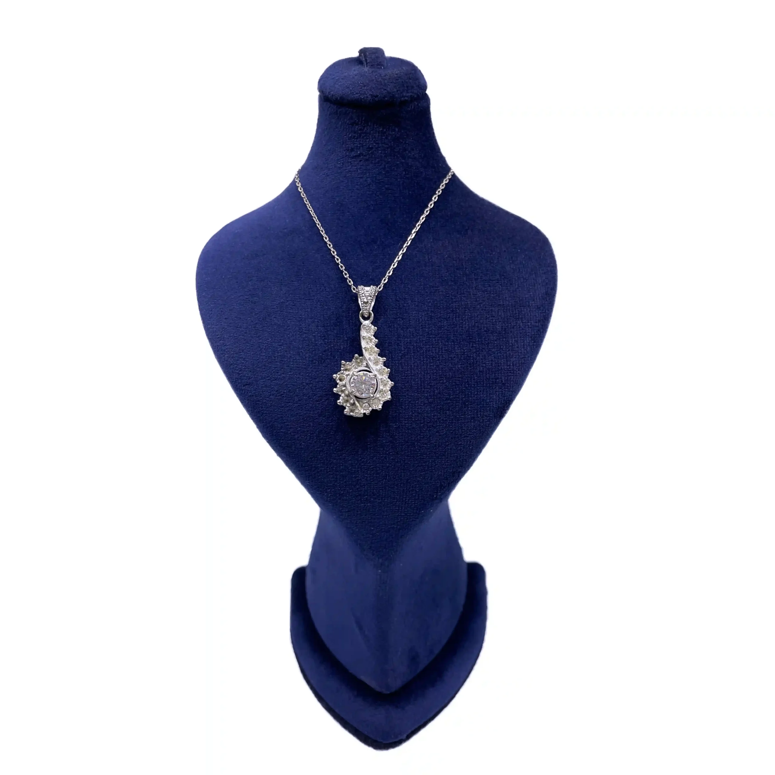 آویز زنانه نقره مارکازیت مدل تک تخمه سفید سیاه قلم بدون زنجیر