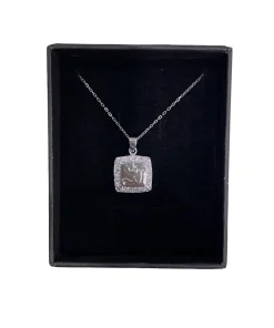 آویز زنانه نقره مدل الله مربع همراه با نگین های اتمی سفید بدون زنجیر