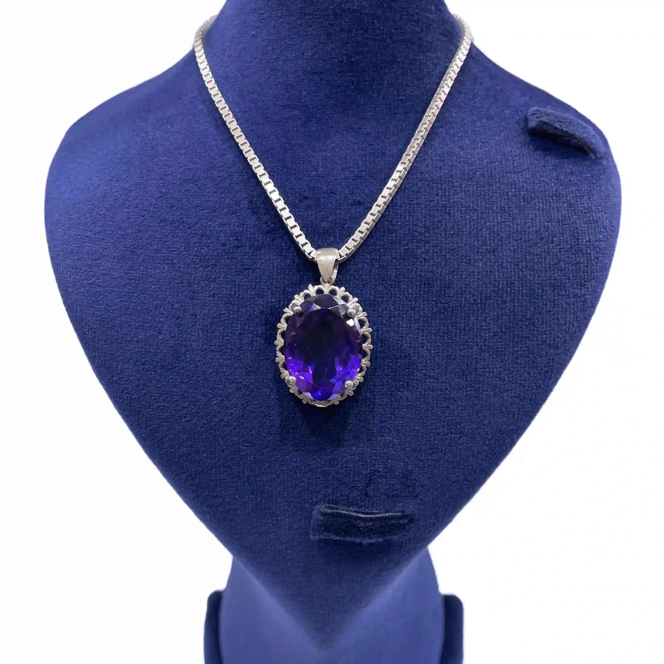 آویز زنانه نقره مدل تخمه بنفش با تخمه اتمی بنفش تراش اوبال کیفیت بسیار بالا و عیار ۹۲۵ است قیمت که مشاهده میکنید بدون زنجیر است و شما میتوانید آن را با زنجبر خود و یا هر زنجیر دیگری که در سایت مشاهده میکنید ( در بخش نقره – زنجیر زنانه ) برای این کار ست کنین و زنجیری که در داخل عکس قابل مشاهده است برای نشان دادن عکس است این نیمست شامل : یک مدال گردنی