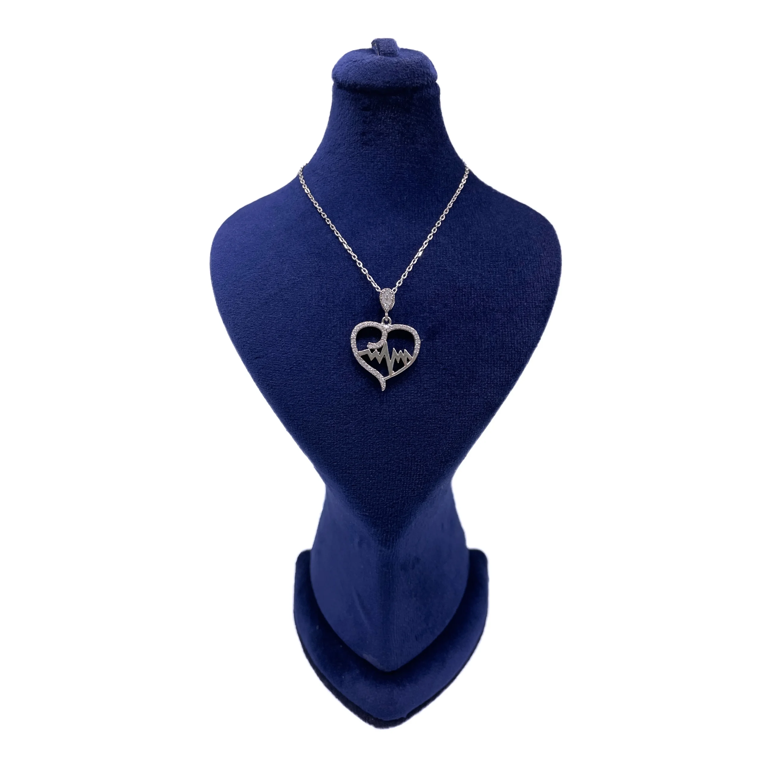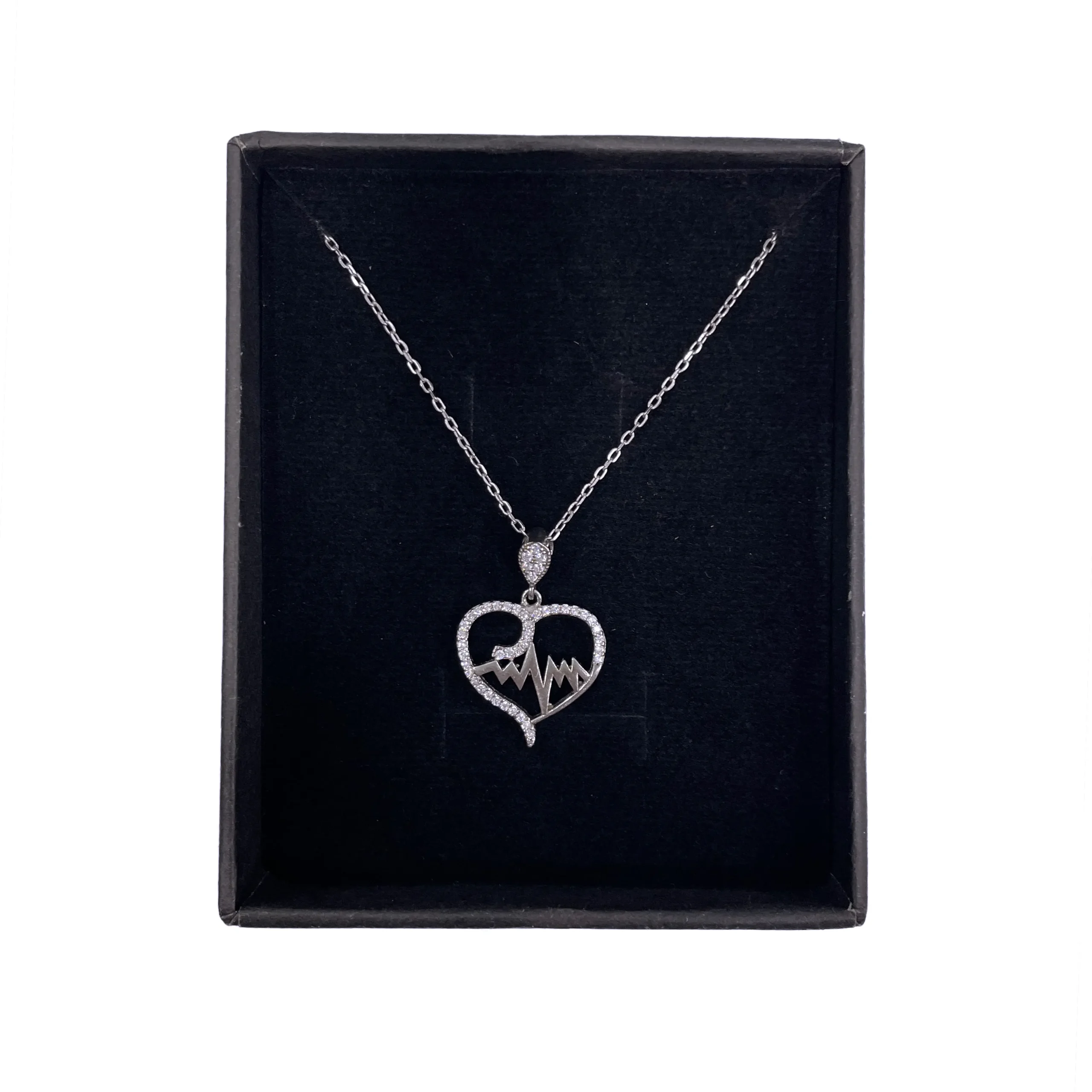 آویز زنانه نقره مدل قلب نبض آب رادیوم همراه با نگین های اتمی سفید بدون زنجیر