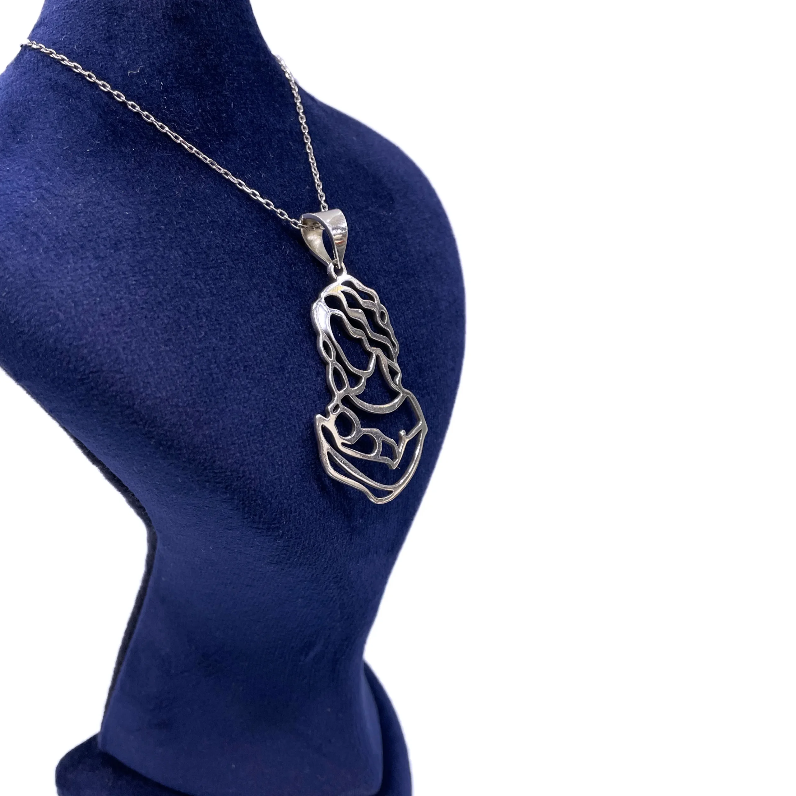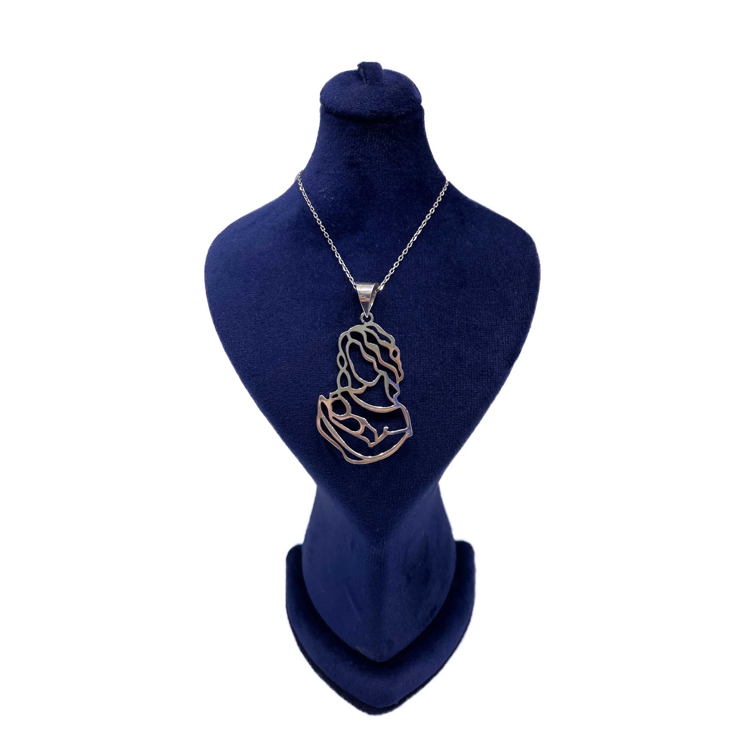 آویز نقره زنانه مادر و فرزند لیزری بدون زنجیر