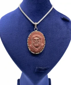 آویز نقره مردانه با سنگ جاسبر قرمز طرح شمایل کار دست بدون زنجیر