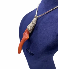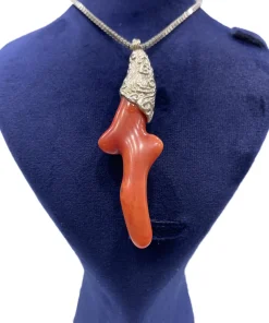 آویز نقره مردانه با سنگ مرجان قرمز