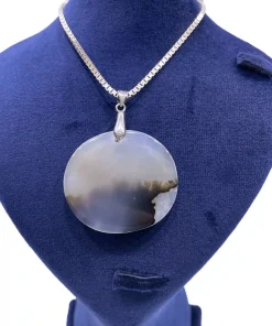 آویز نقره مردانه با سنگ عقیق شجر گرد بدون زنجیر