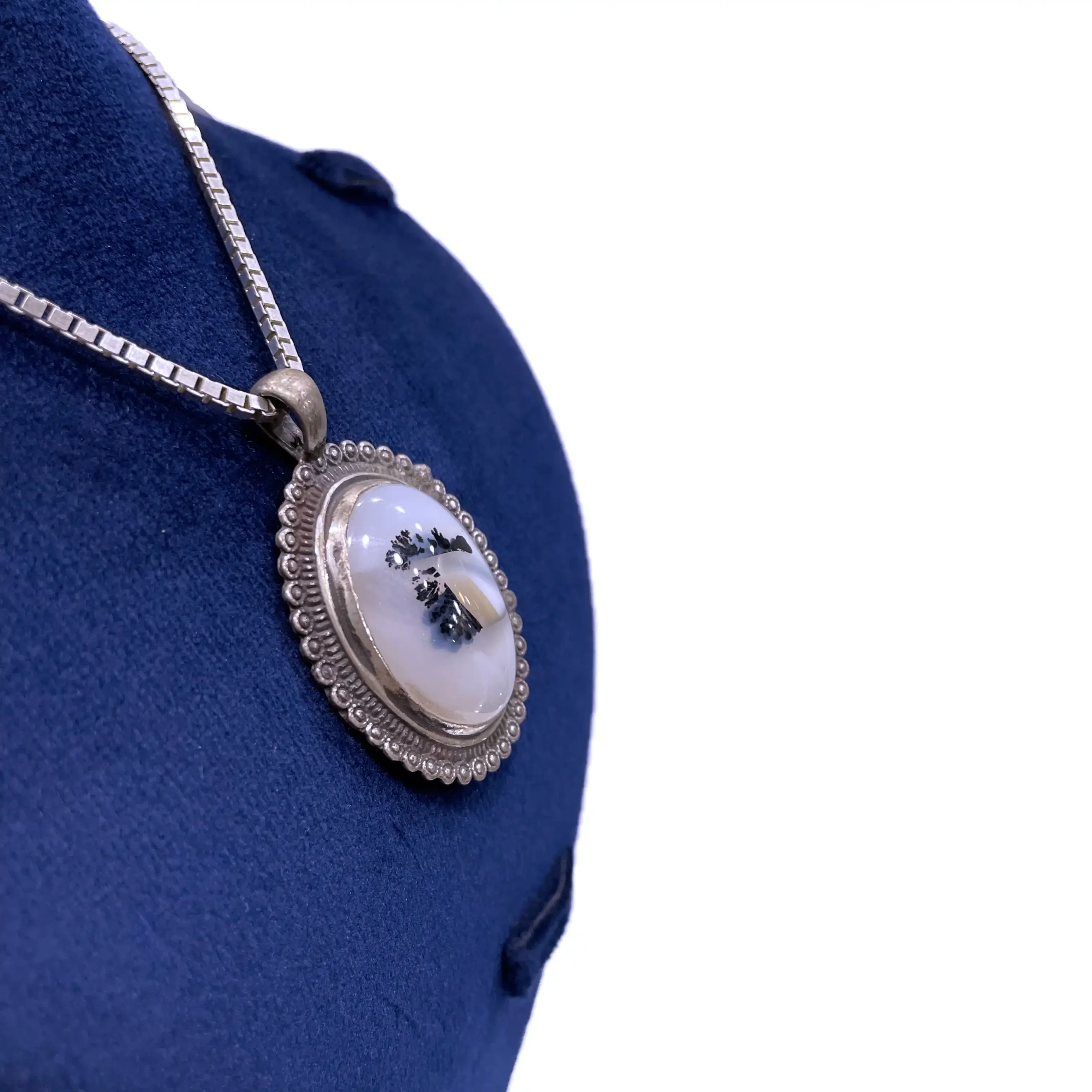 آویز نقره مردانه سنگ شجر مدل آفرید