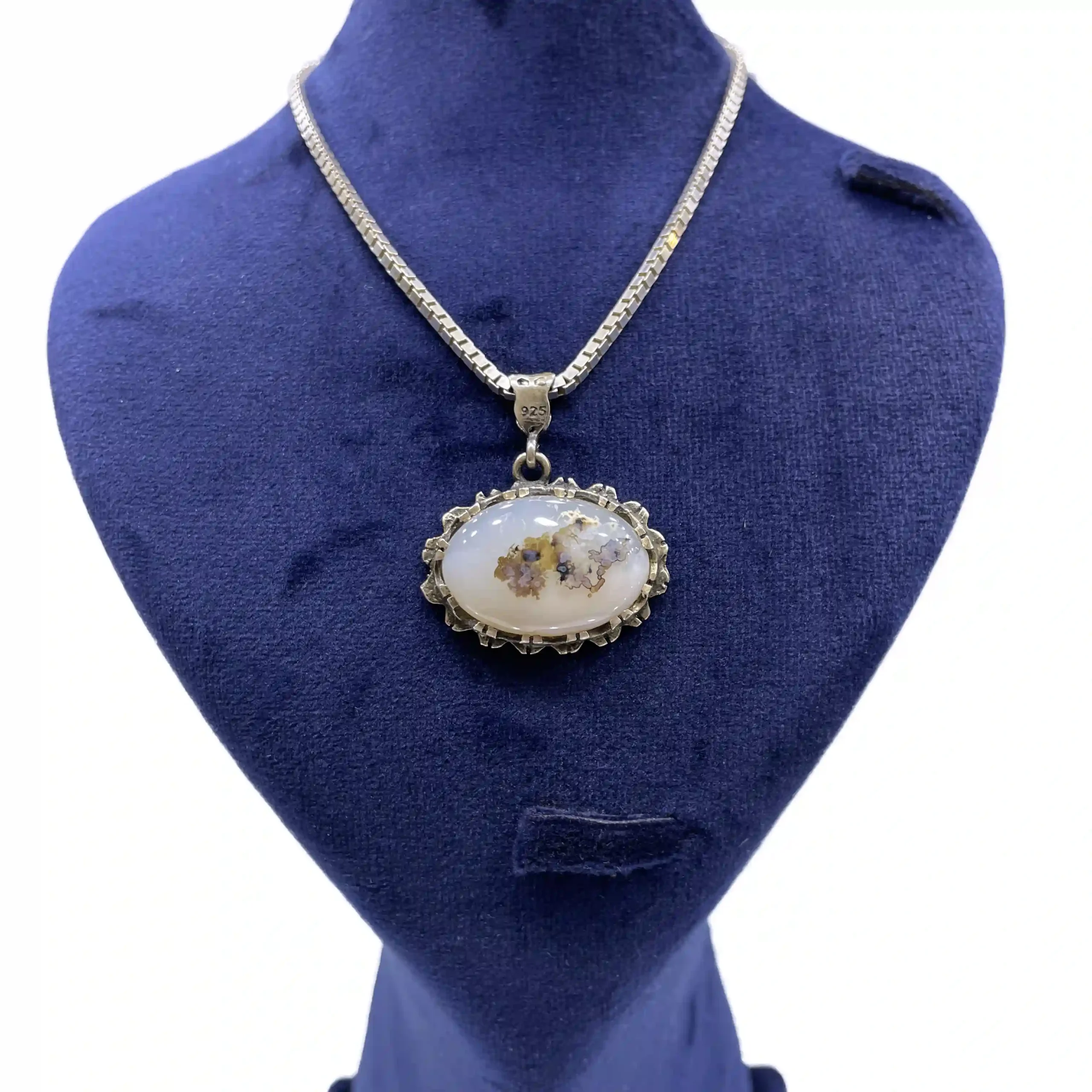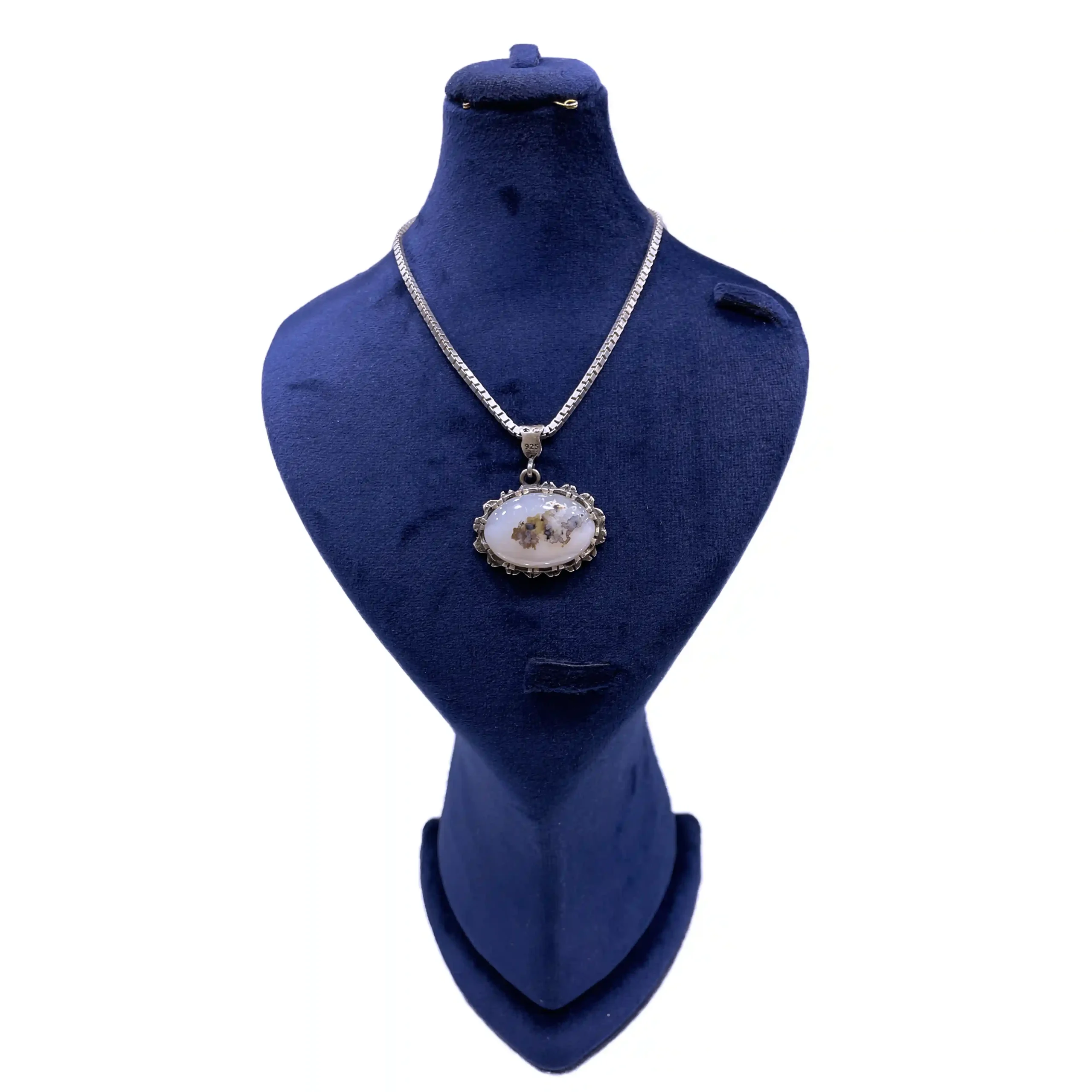 آویز نقره مردانه سنگ شجر مدل دورچ