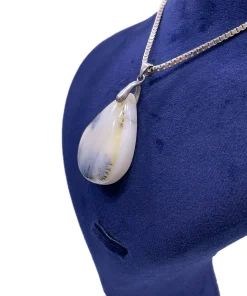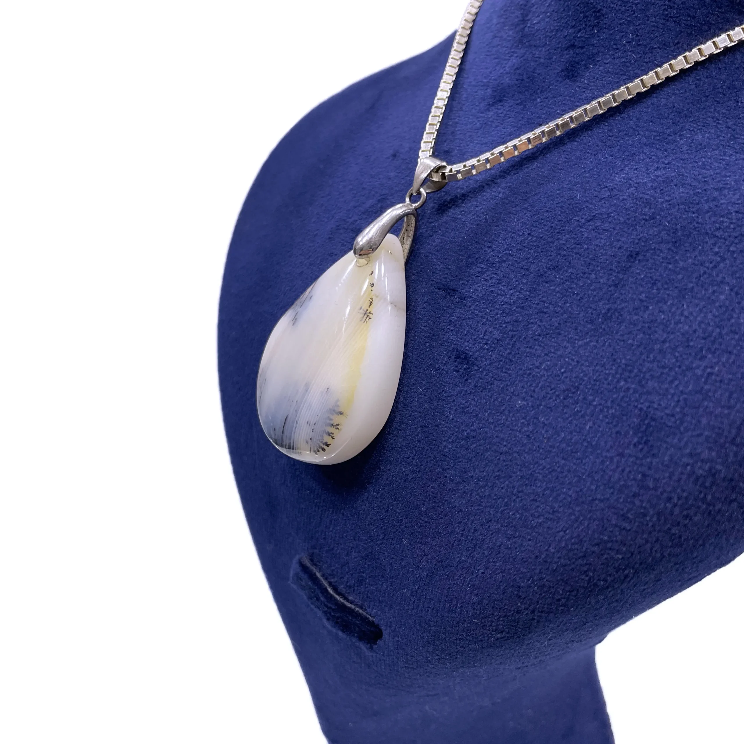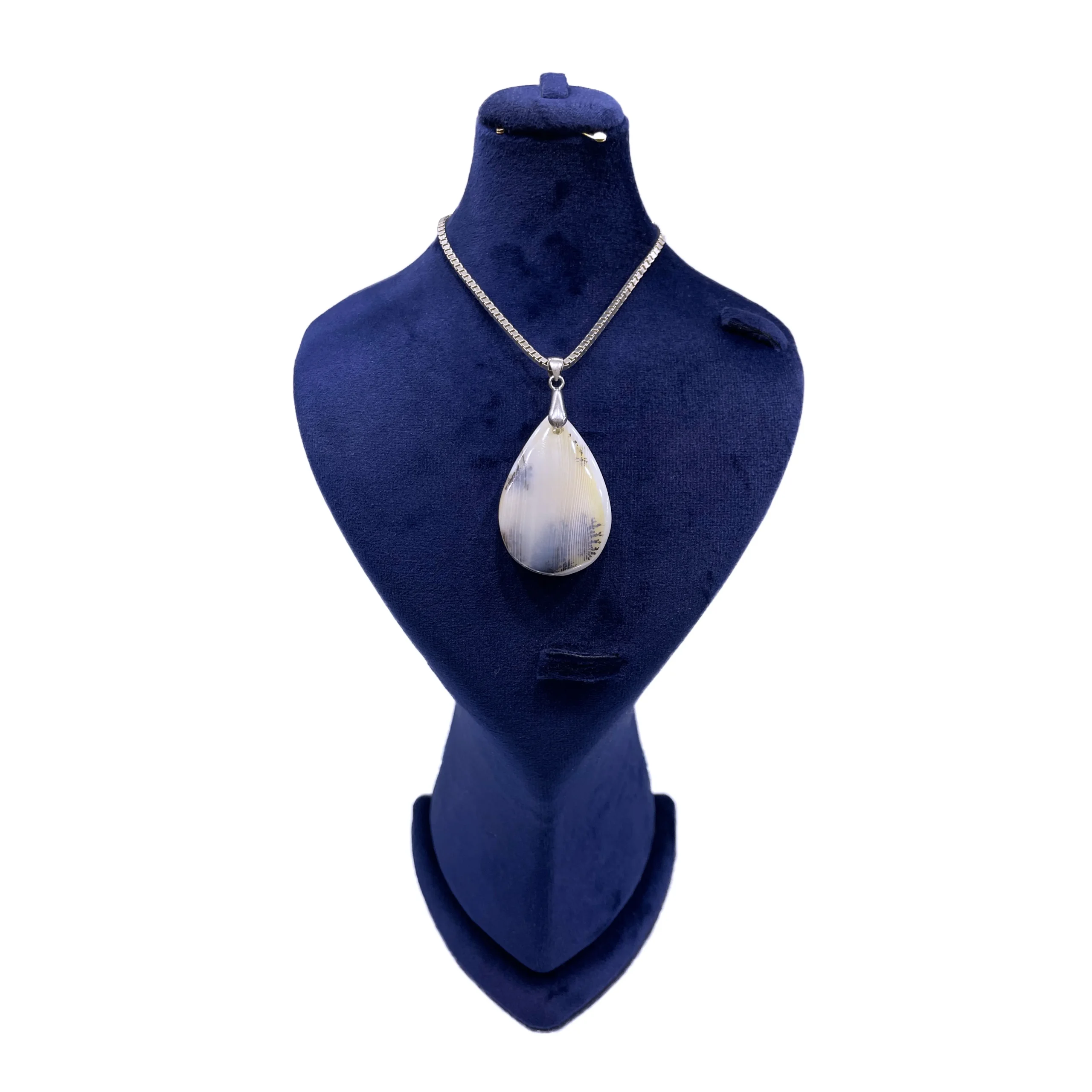 آویز نقره مردانه و زنانه با سنگ شجر تراش اشک اصل بدون زنجیر