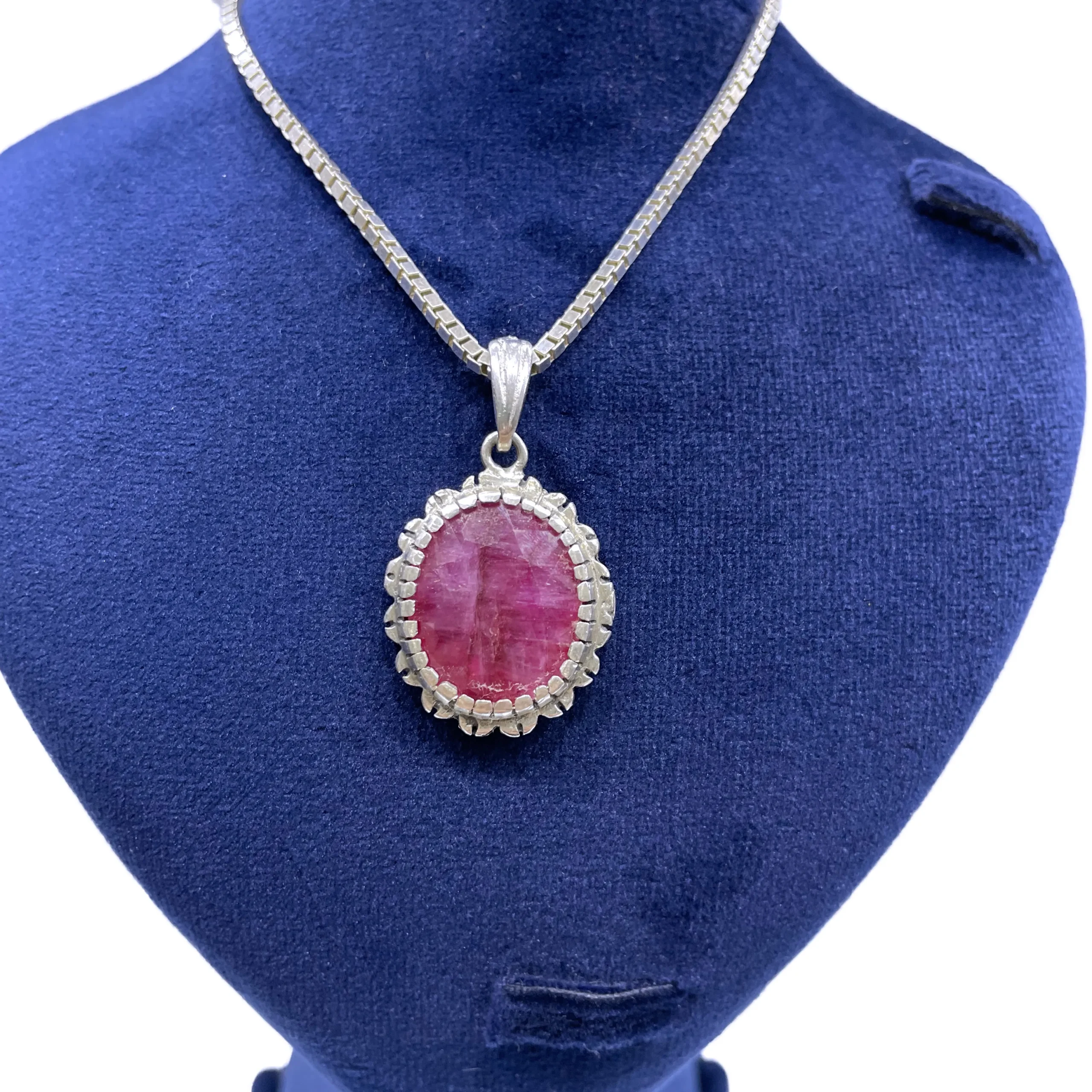 آویز نقره مردانه و زنانه با سنگ یاقوت قرمز افغانستان