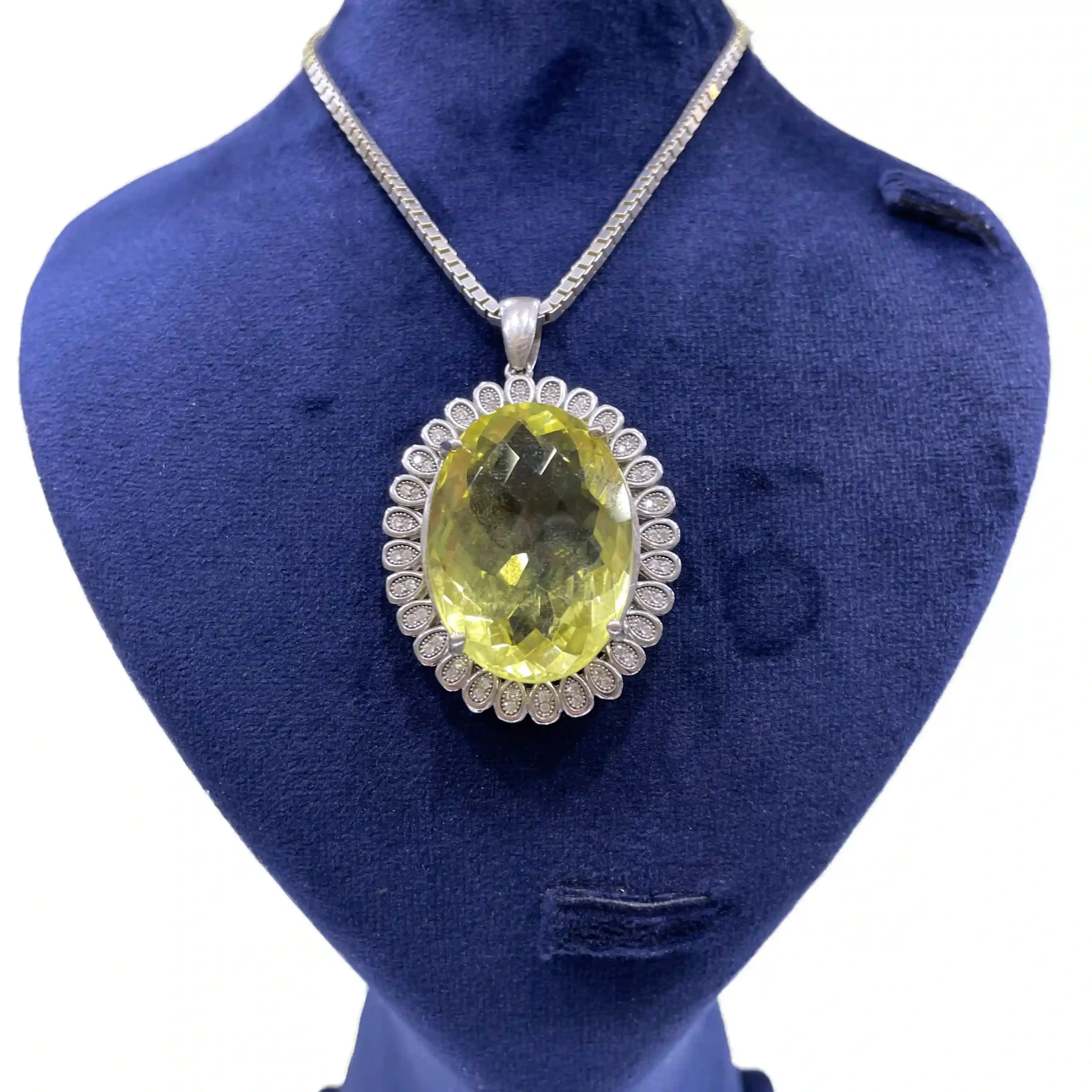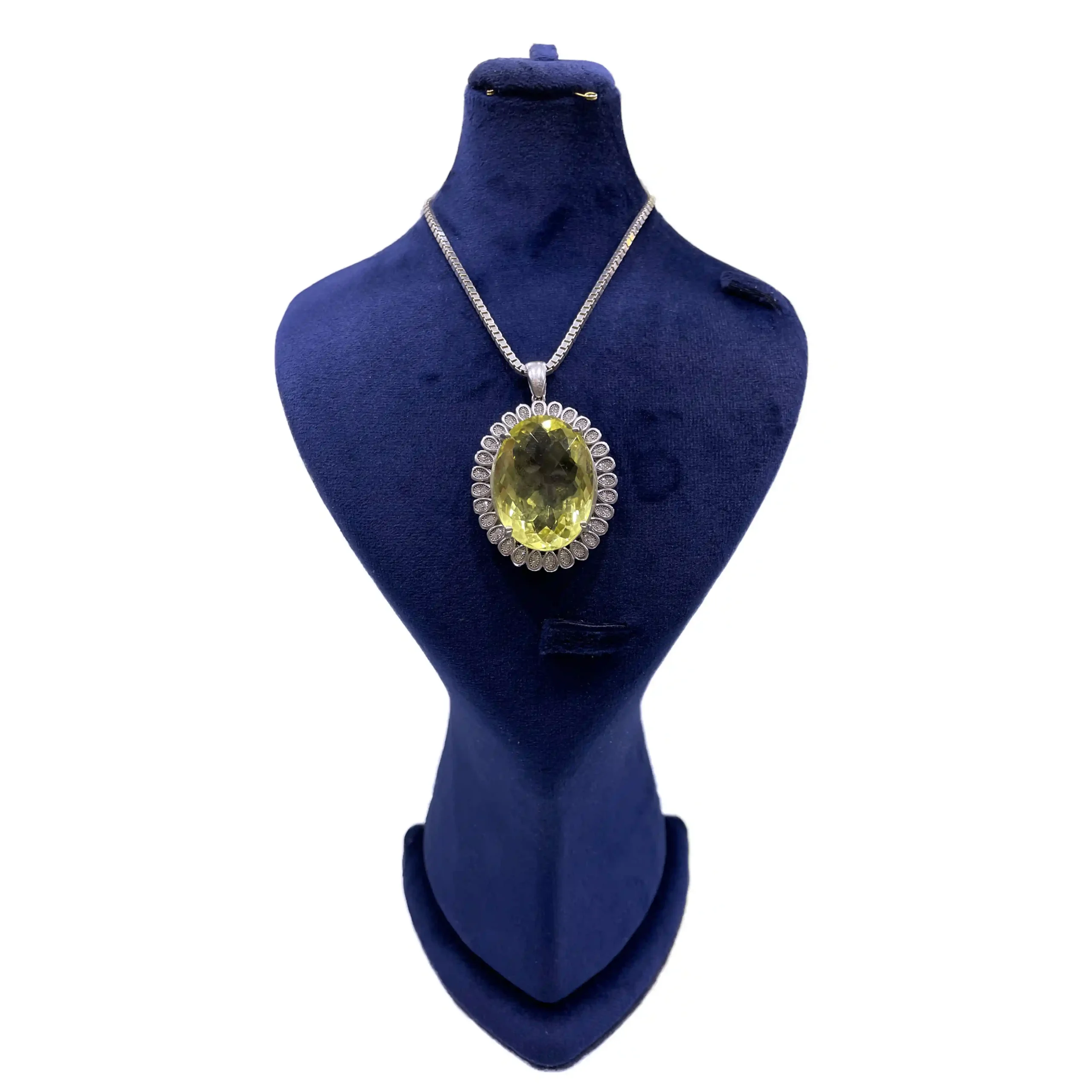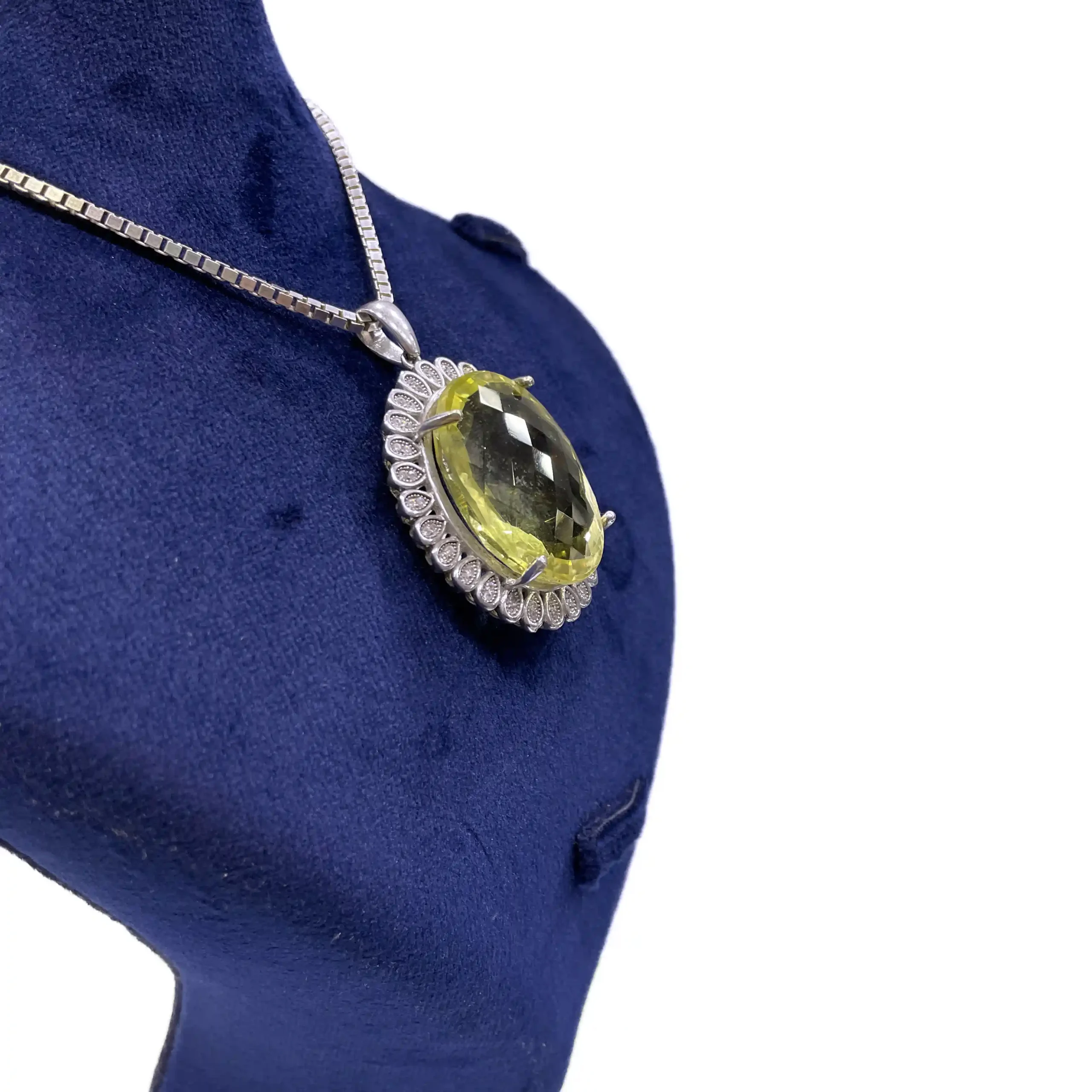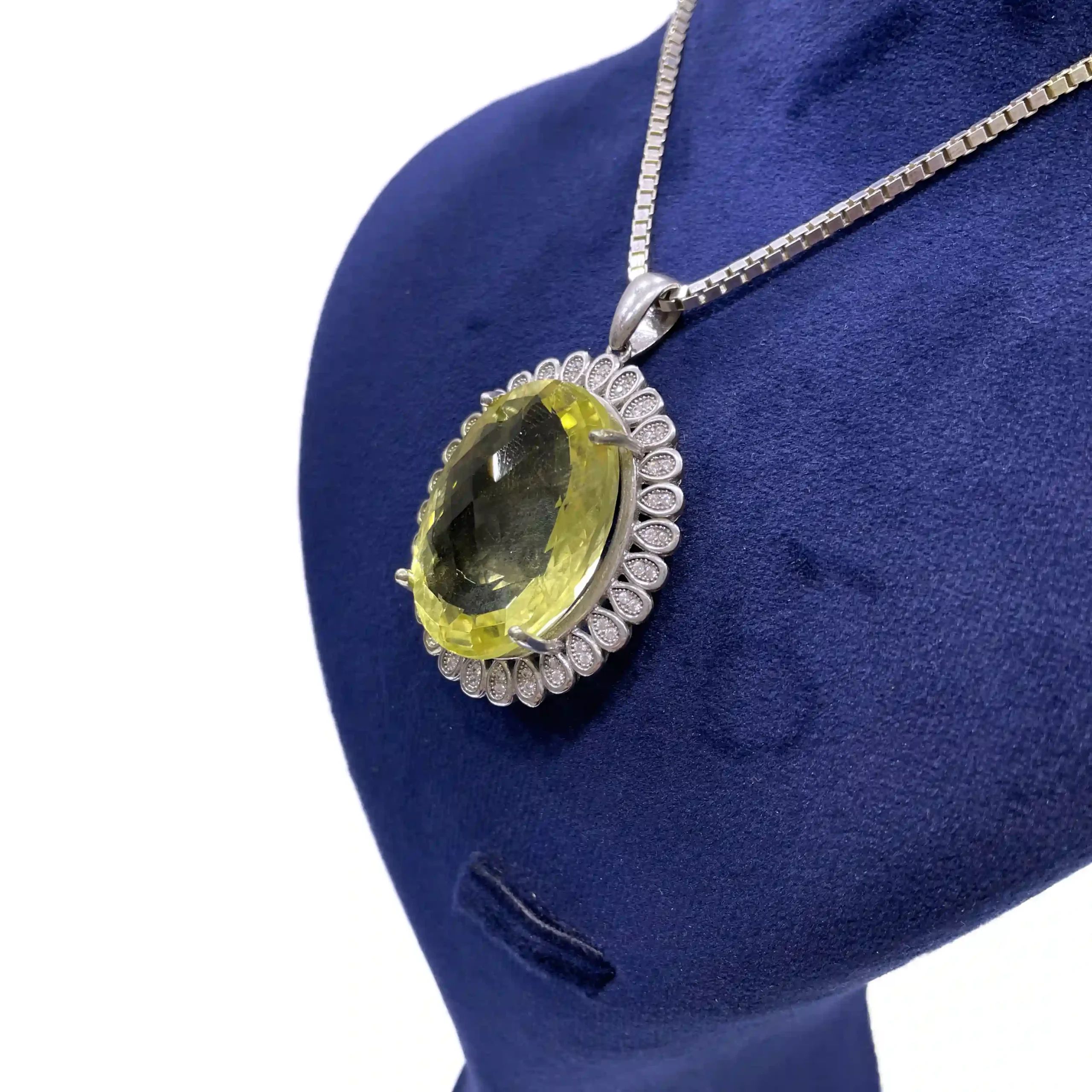 آویز گردنی زنانه نقره سنگ سیترین زرد