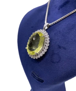 آویز گردنی زنانه نقره همراه با سنگ سیترین زرد دور نگین اتمی سفید بدون زنجیر