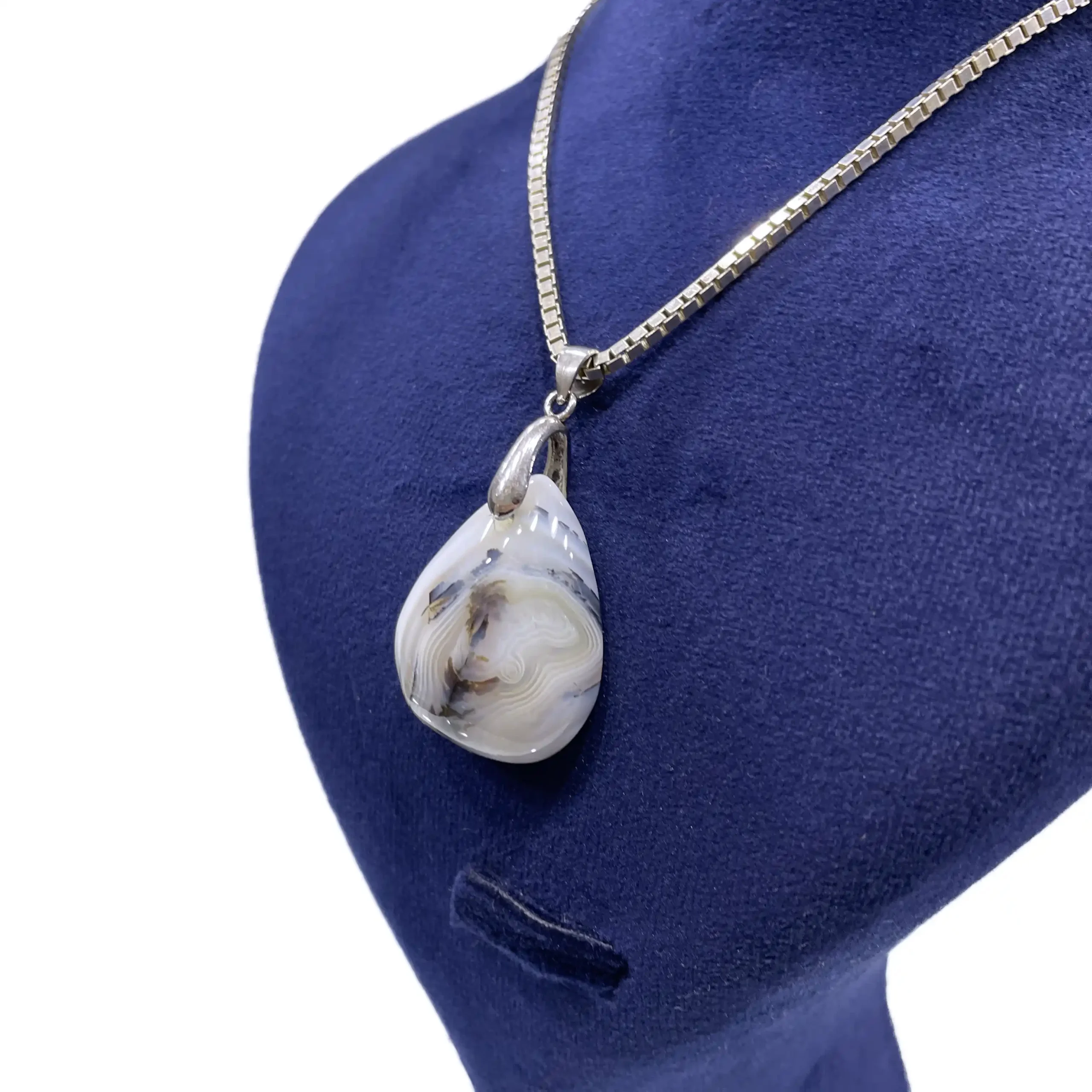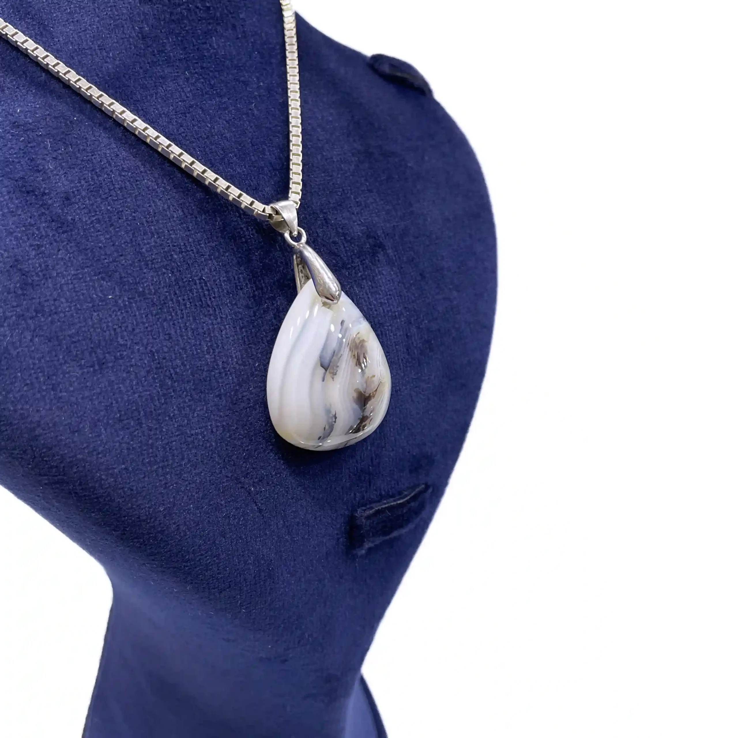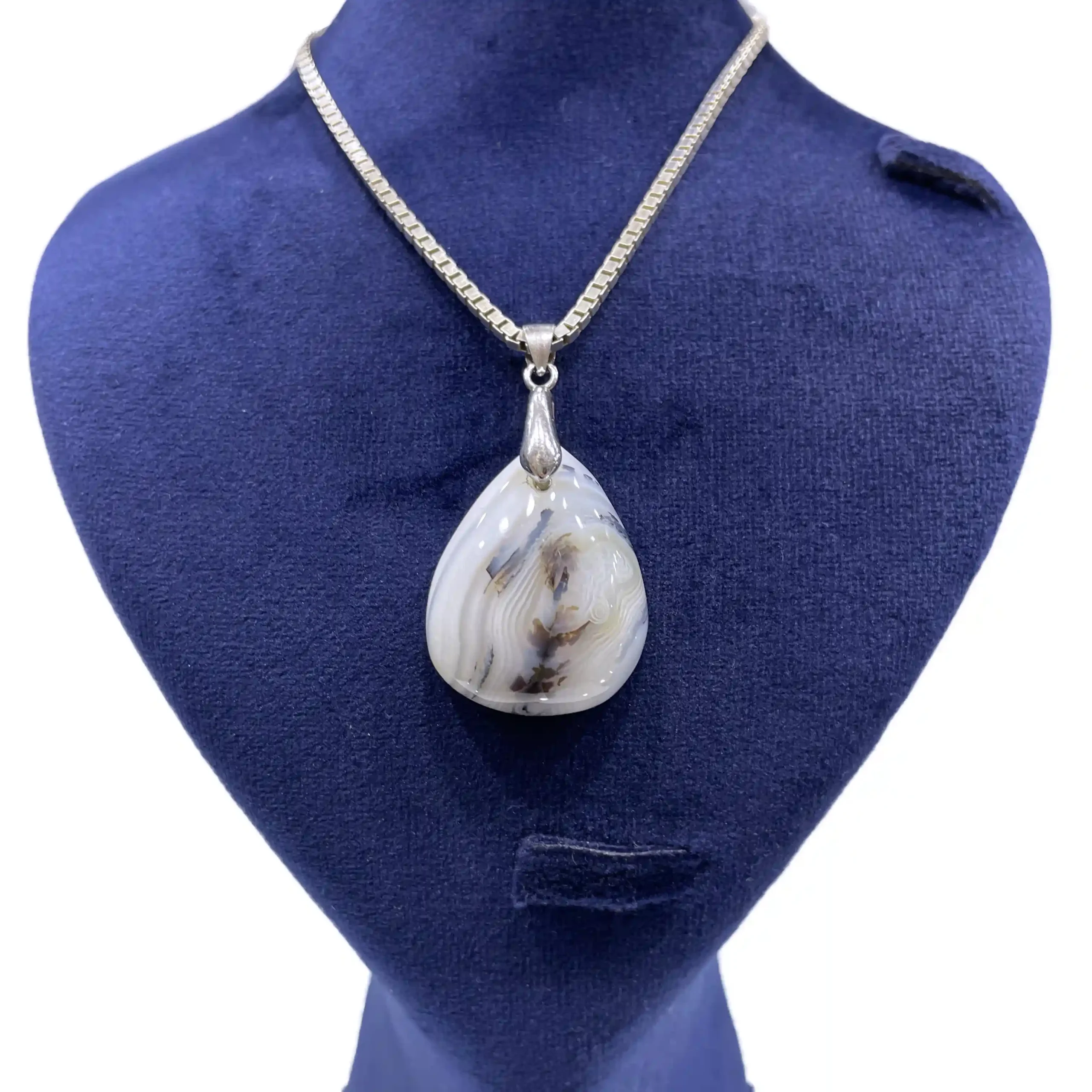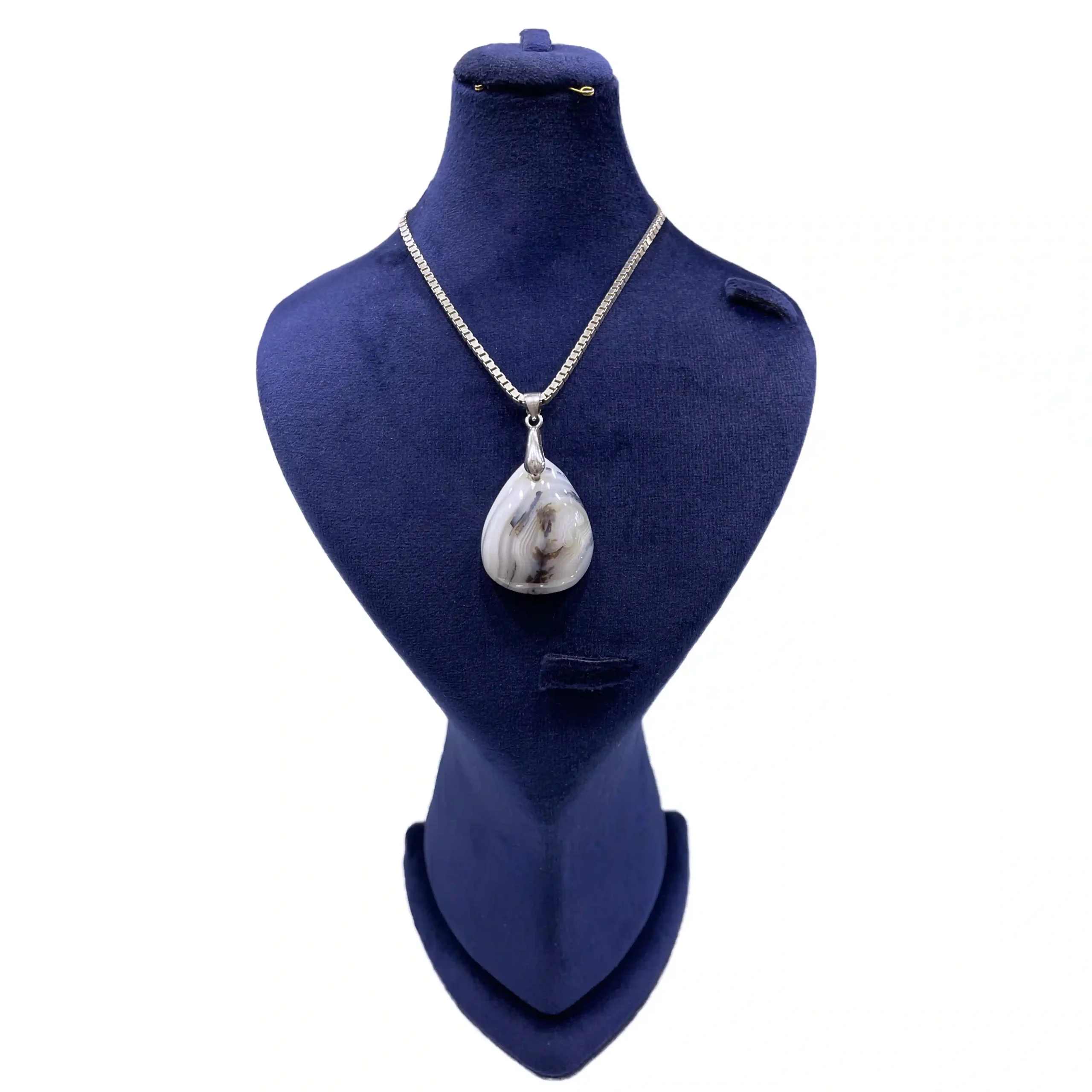 آویز گردنی زنانه نقره سنگ عقیق شجر مدل سی سام