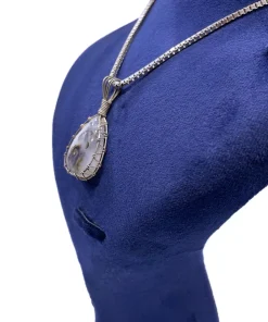 آویز گردنی زنانه نقره سنگ عقیق شجر مدل فلوریا