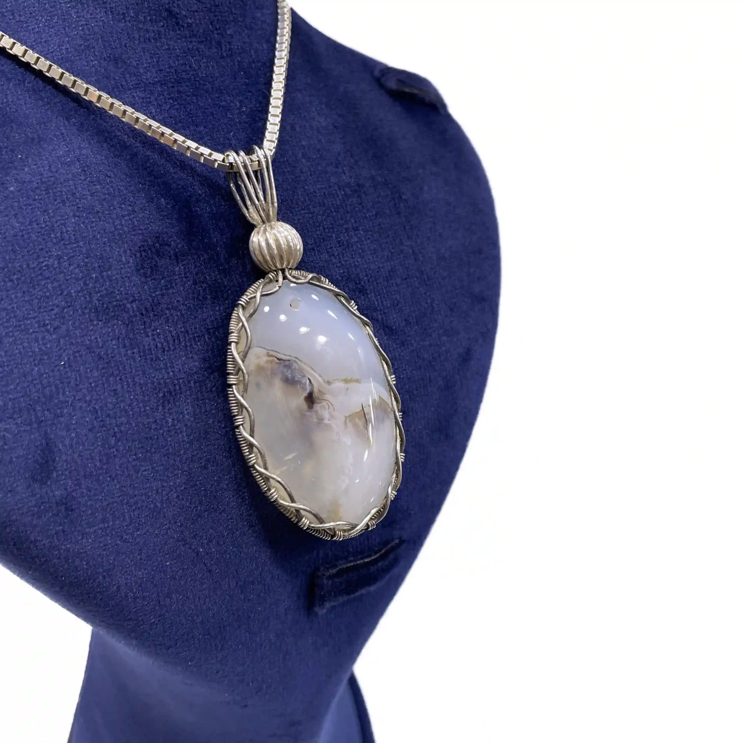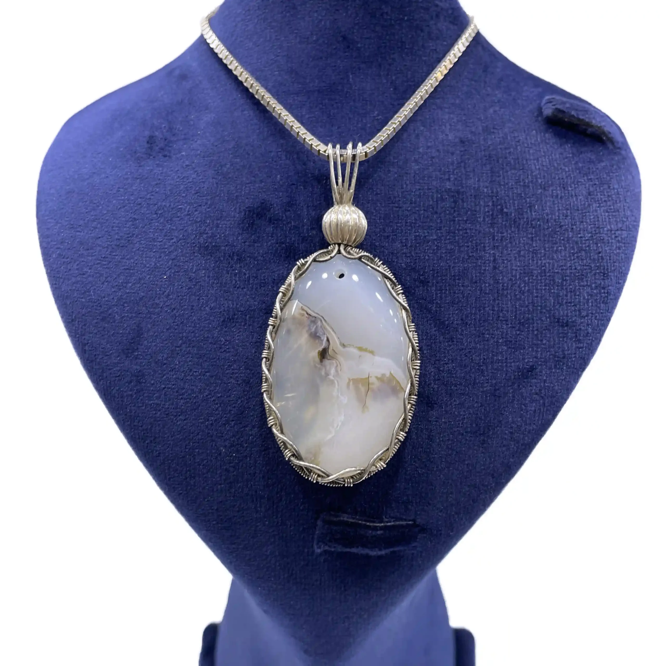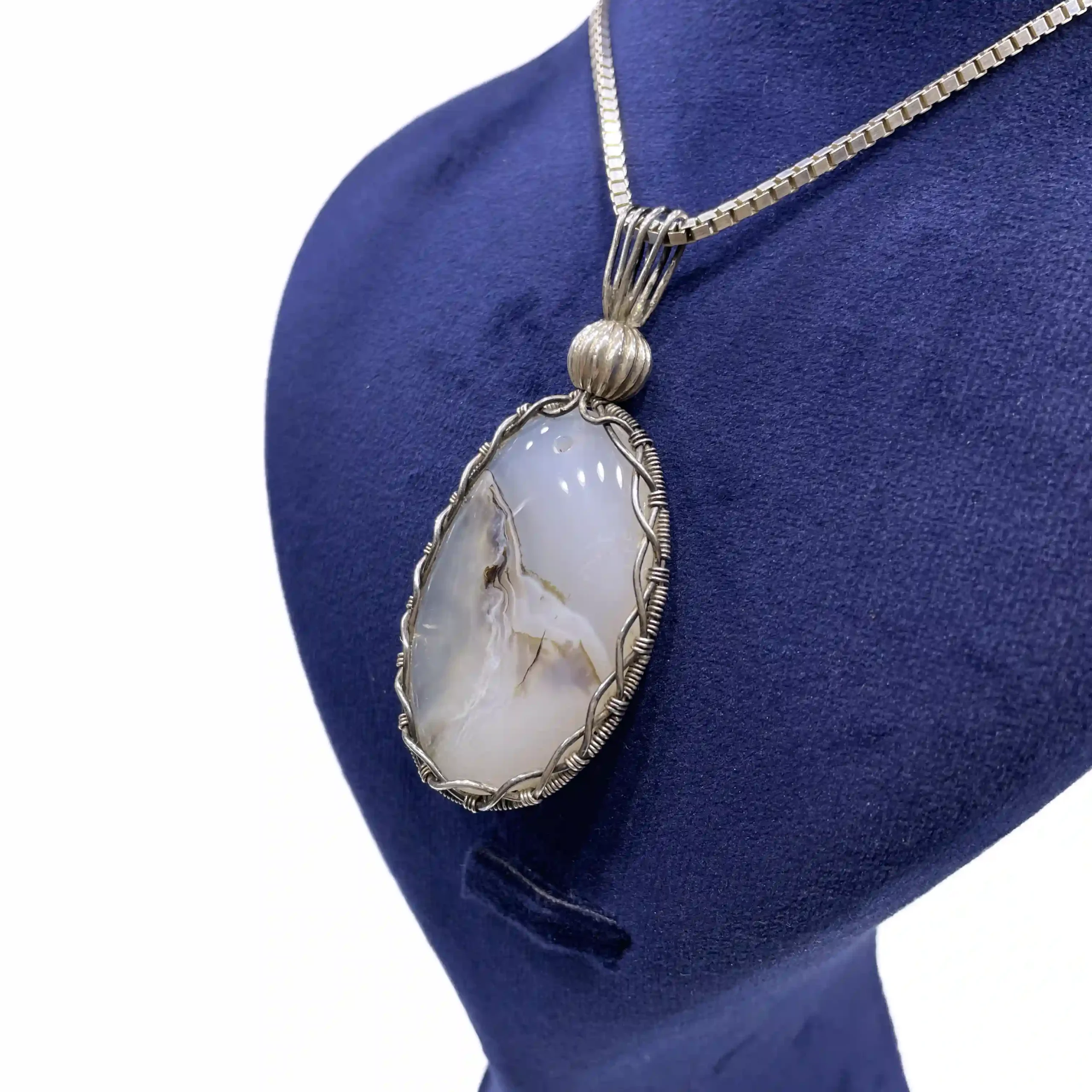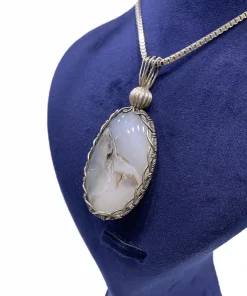 آویز گردنی زنانه نقره سنگ عقیق شجر مدل لیوسا