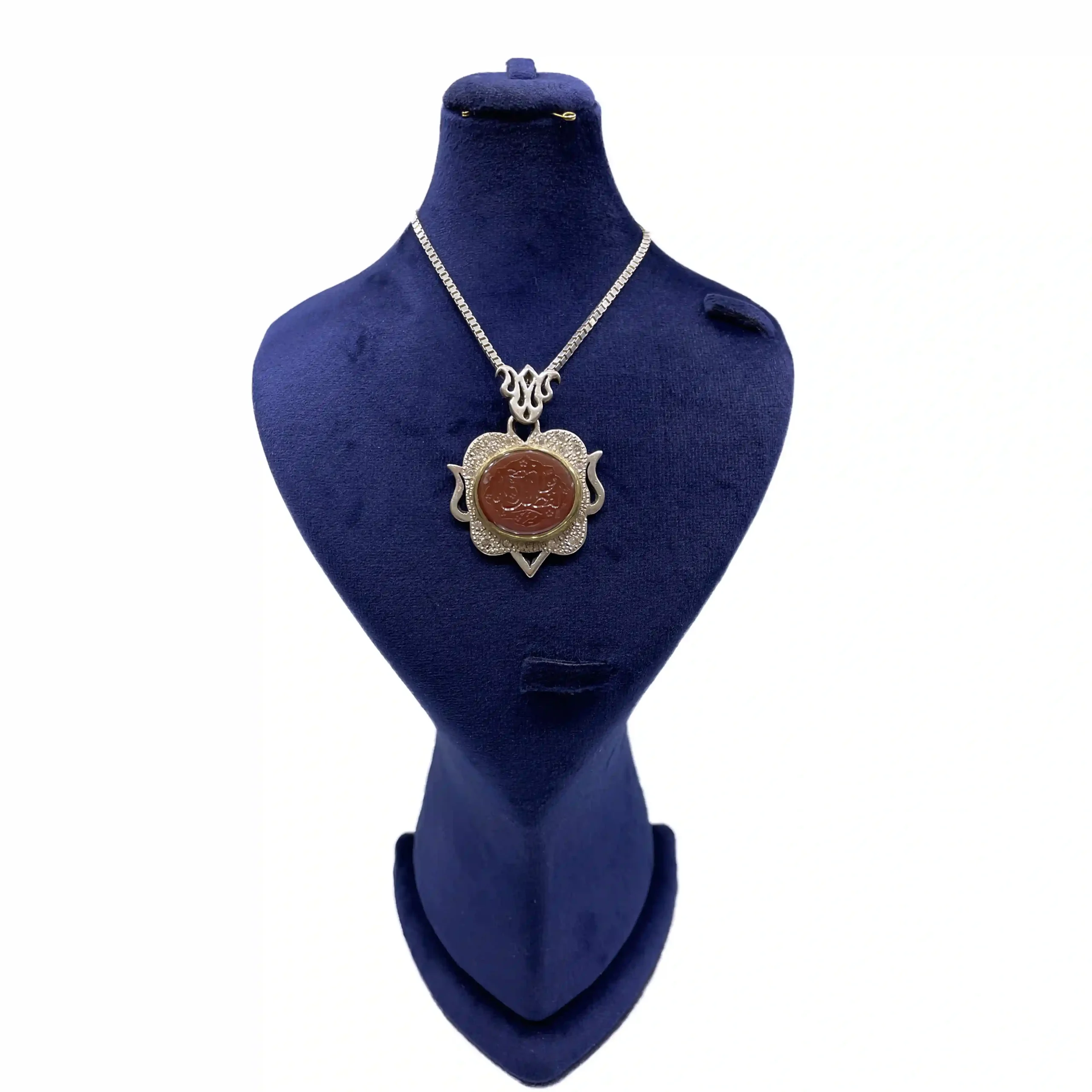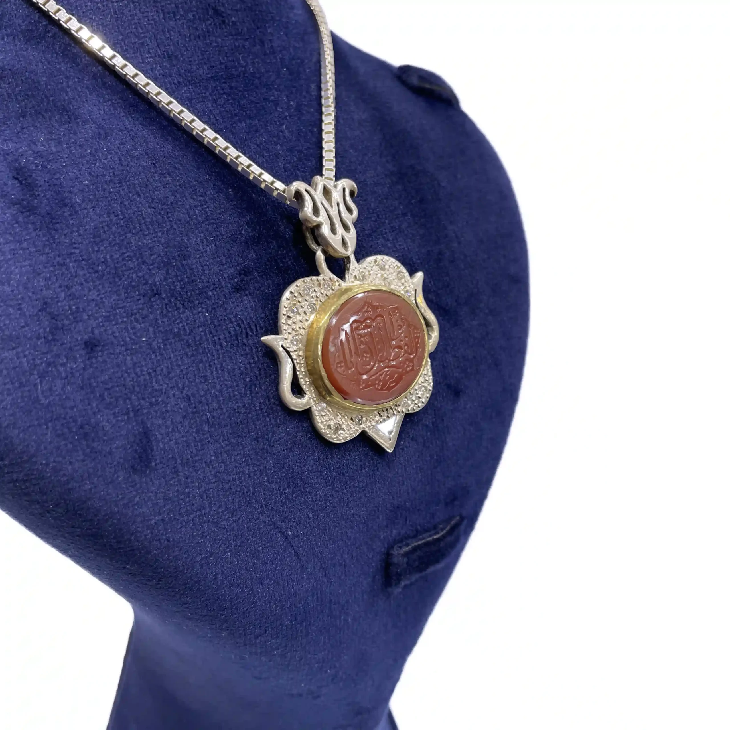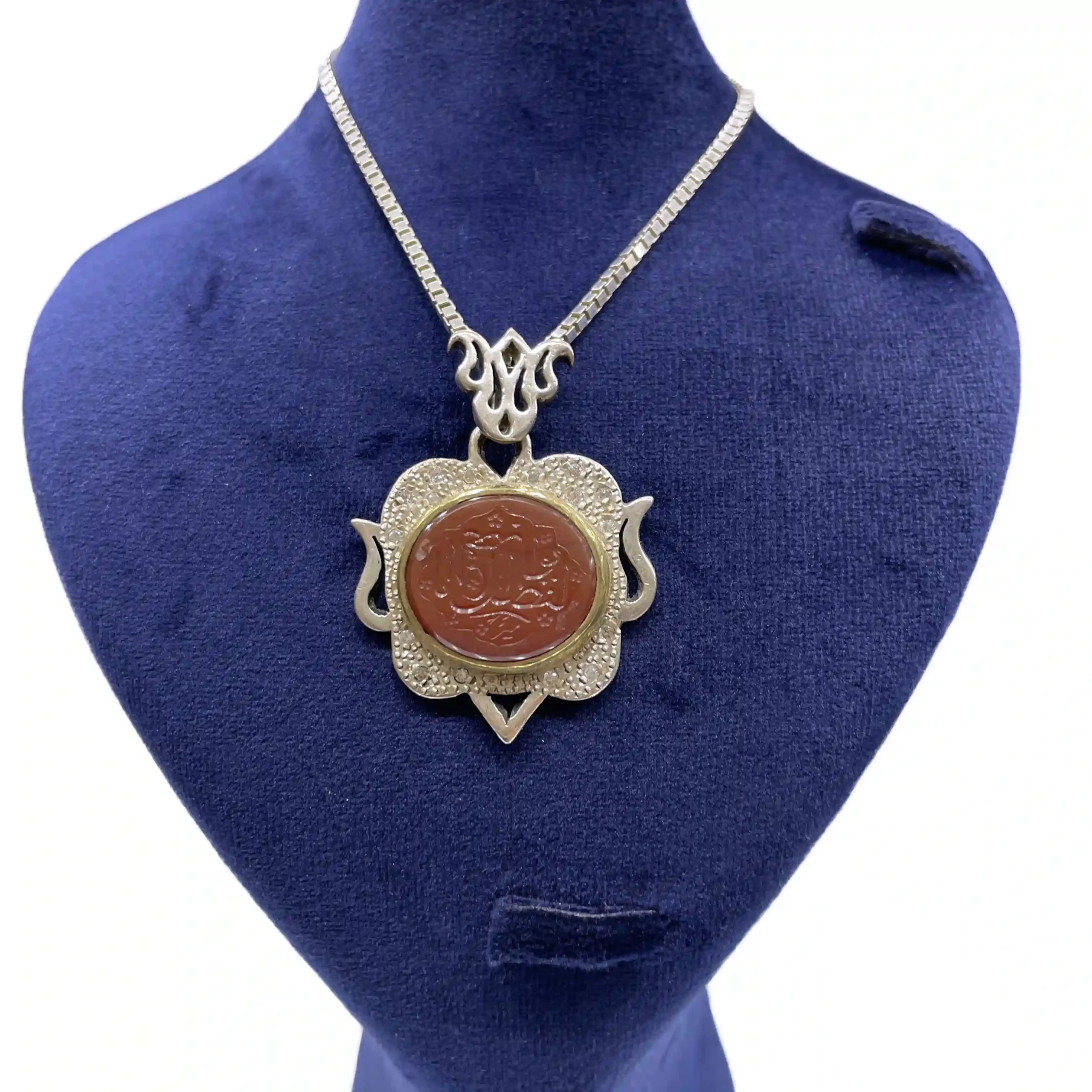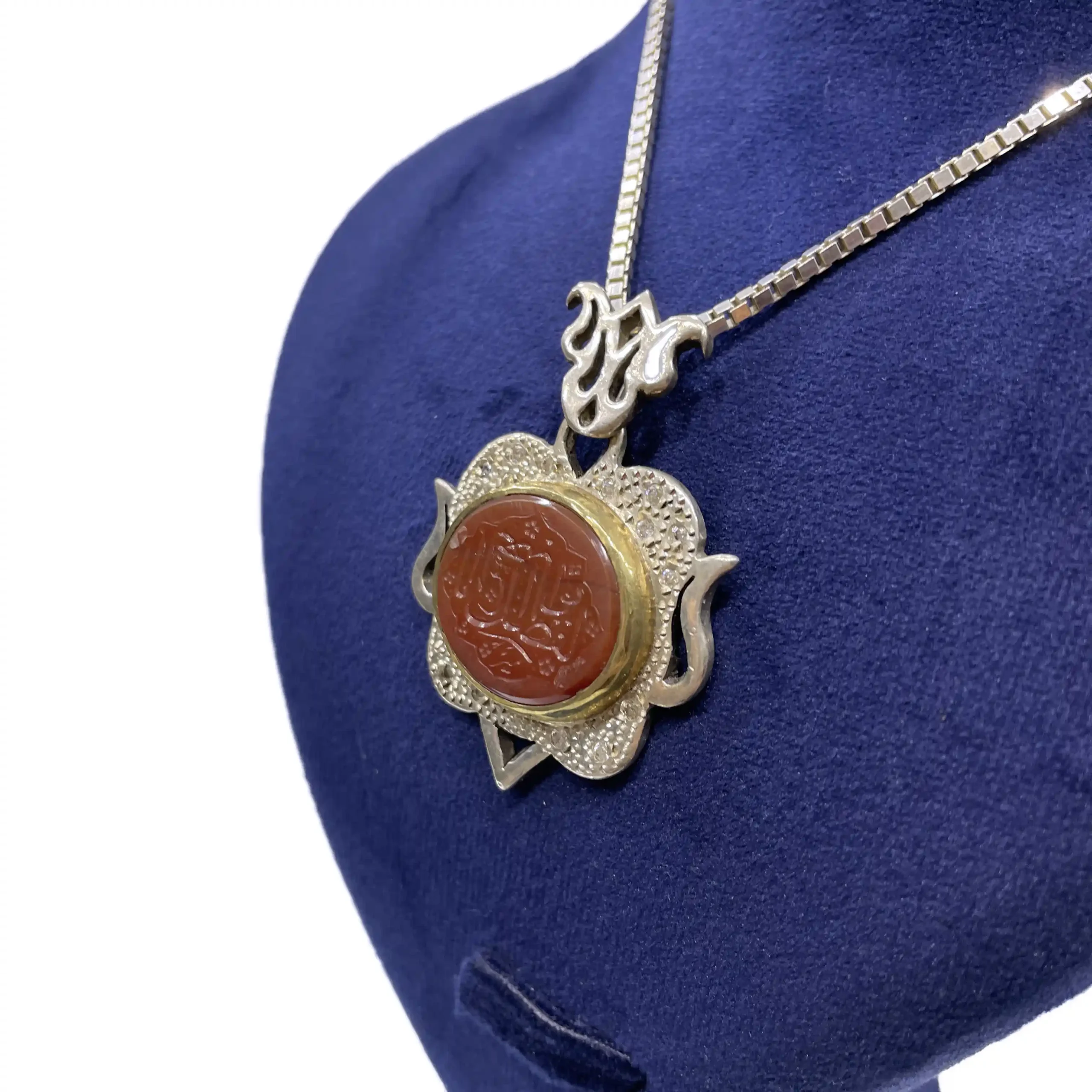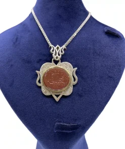 آویز گردنی زنانه نقره سنگ عقیق قهوه ای خط ذکر یا ابوالفضل العباس دور نگین سنگ اصل بسیار با کیفیت است . کیفیت بسیار بالا و عیار ۹۲۵ است توجه داشته باشید که قیمتی که مشاهده میکنید بدون زنجیر است و شما میتوانید آن را با زنجیر خود و یا هر زنجیر دیگری که در سایت مشاهده میکنید ( در بخش نقره – زنجیر زنانه ) برای این کار ست کنین و زنجیری که در داخل عکس قابل مشاهده است برای نشان دادن عکس است این نیمست شامل : یک مدال گردنی