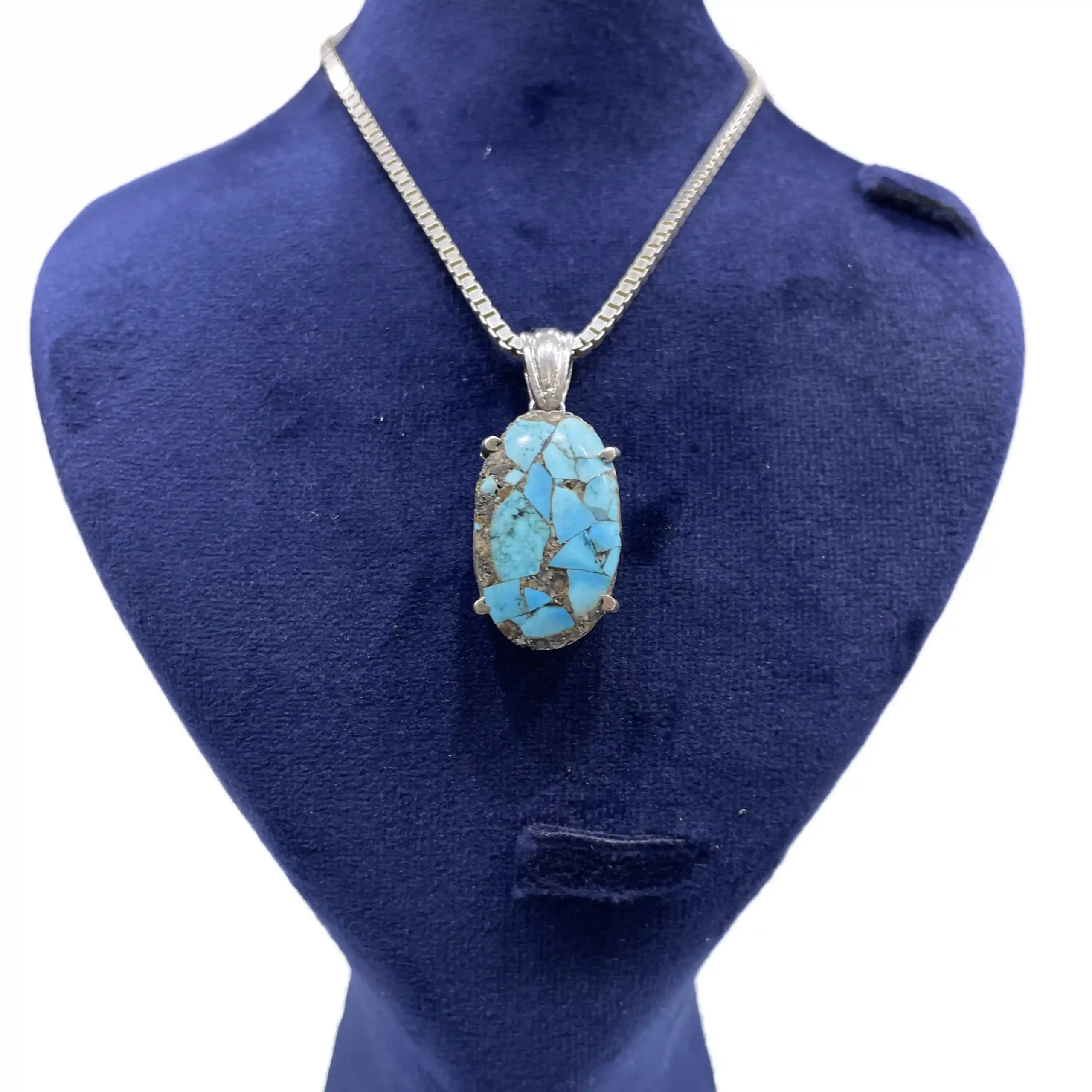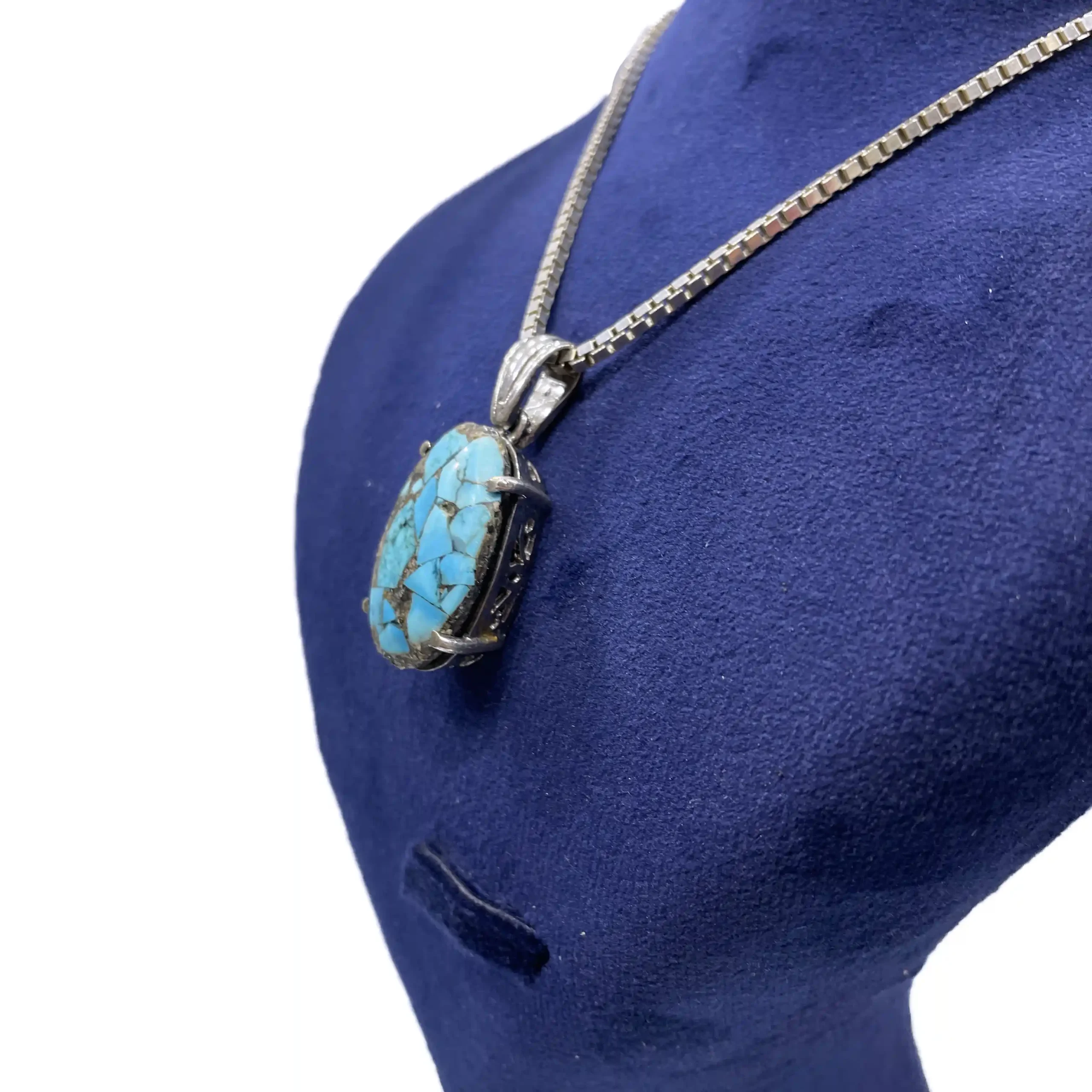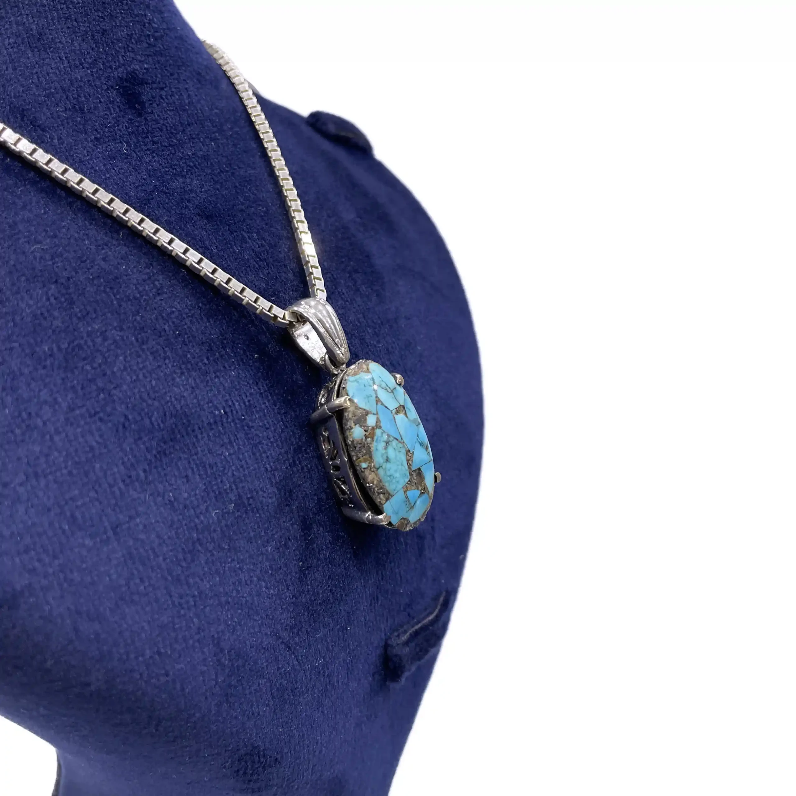آویز گردنی زنانه نقره سنگ فیروزه مدل ریجینا