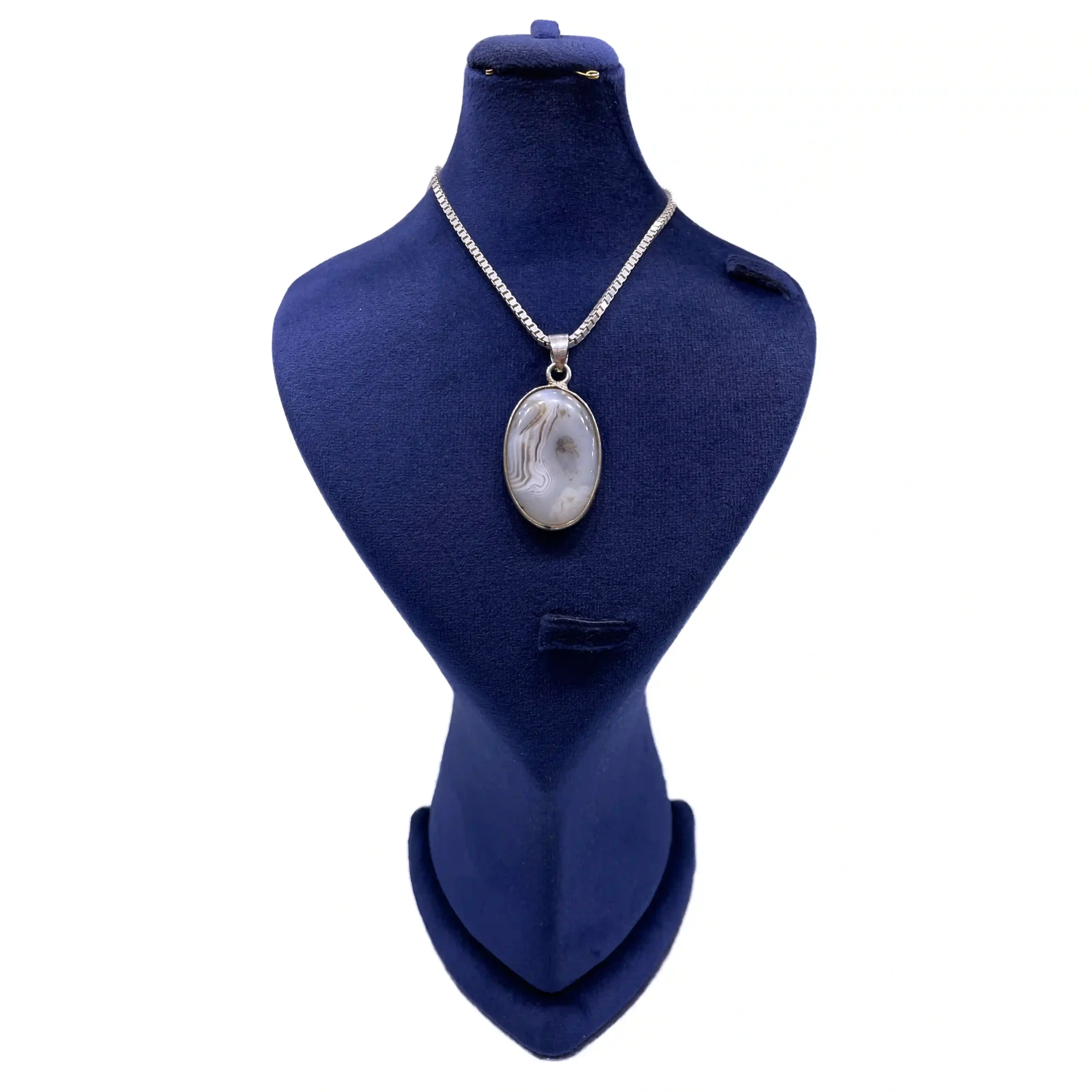 آویز گردنی زنانه نقره همراه با سنگ عقیق شجر سولنا بدون زنجیر