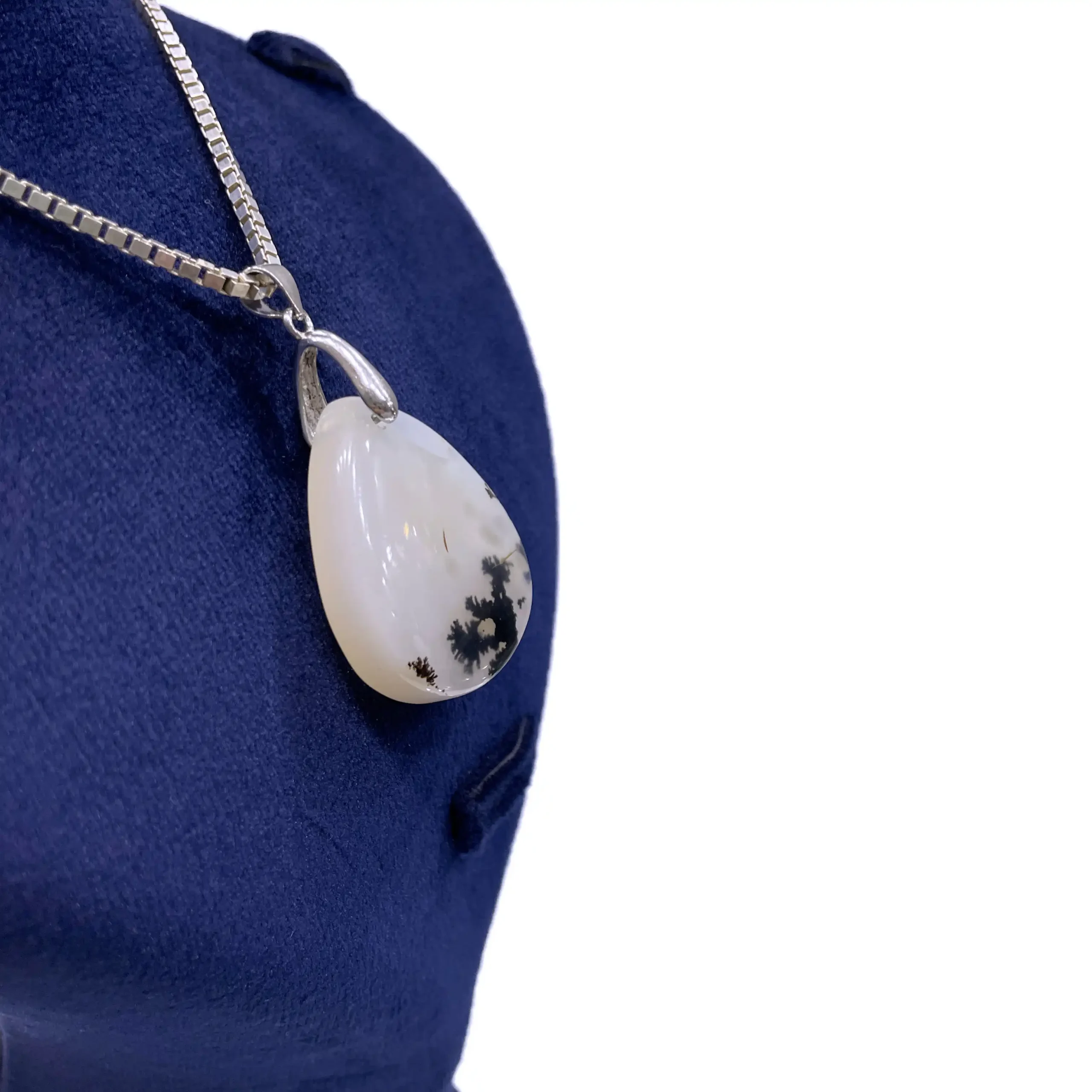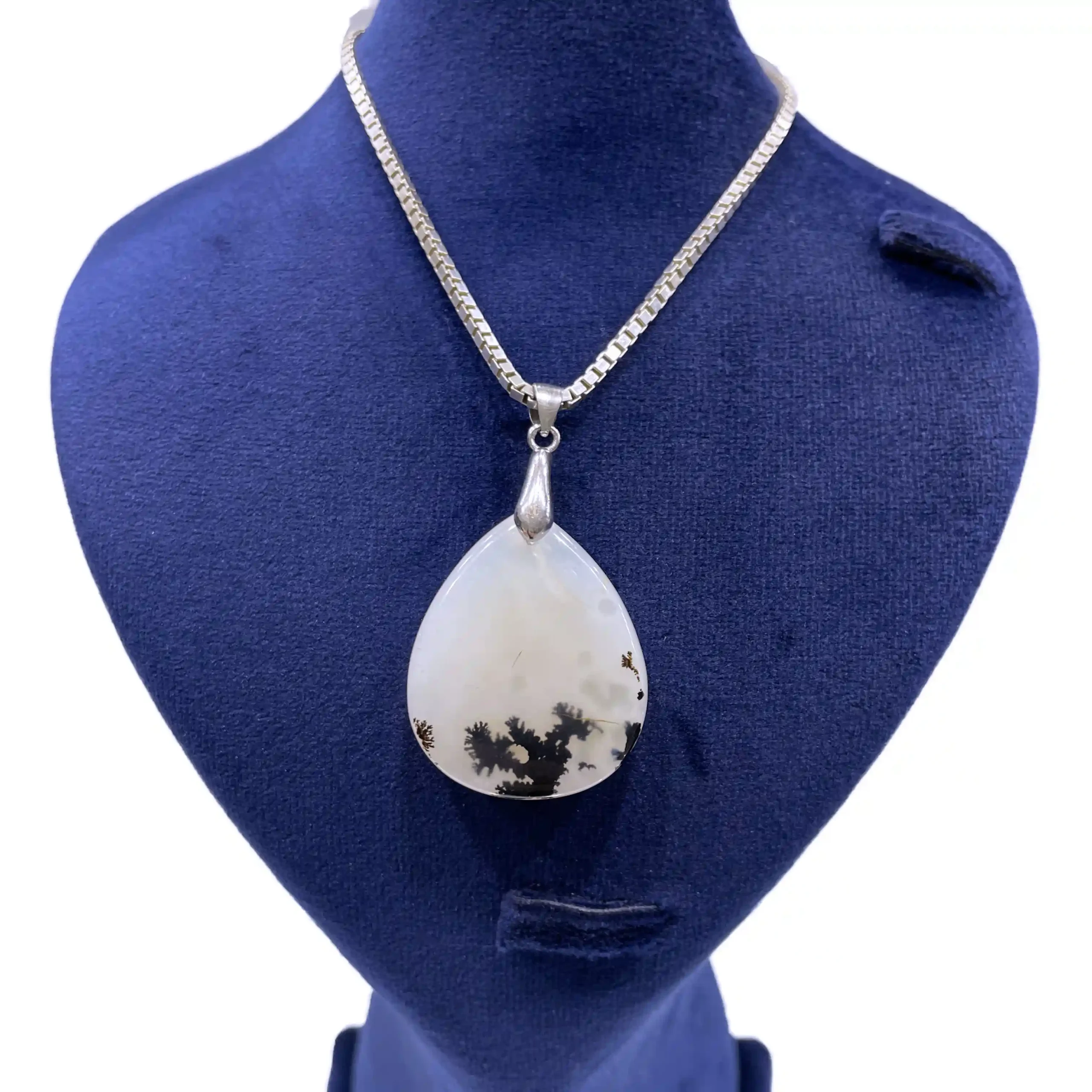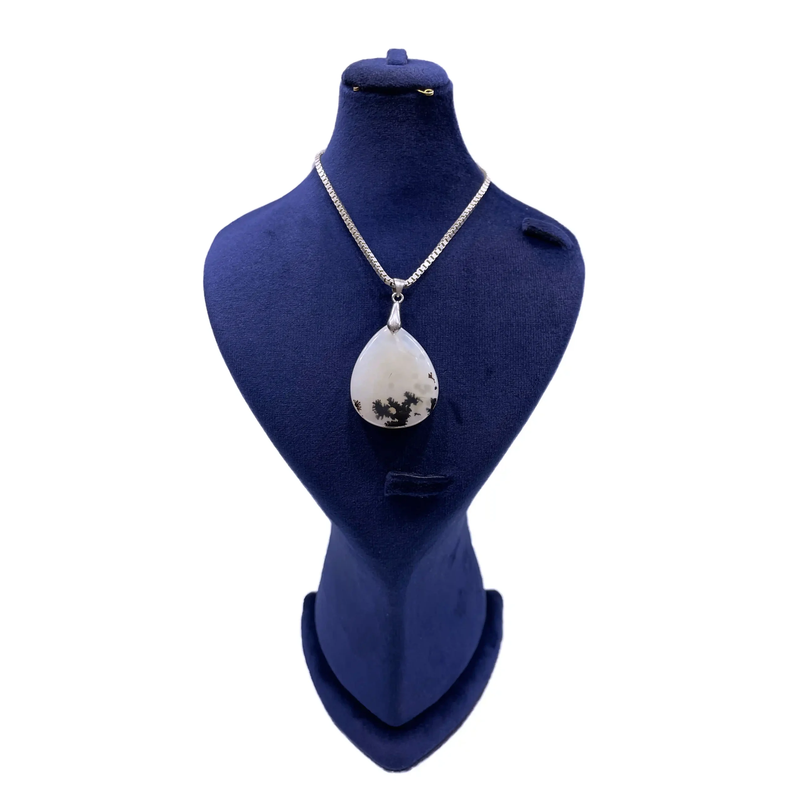 آویز گردنی زنانه نقره همراه با سنگ عقیق شجر میبوسا بدون زنجیر