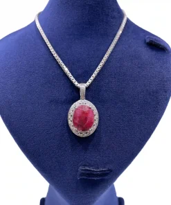 آویز گردنی زنانه نقره یاقوت قرمز تراش اوبال اصل افغانستان بسیار با کیفیت است . کیفیت بسیار بالا و عیار ۹۲۵ است توجه داشته باشید که قیمتی که مشاهده میکنید بدون زنجیر است و شما میتوانید آن را با زنجیر خود و یا هر زنجیر دیگری که در سایت مشاهده میکنید ( در بخش نقره – زنجیر زنانه ) برای این کار ست کنین و زنجیری که در داخل عکس قابل مشاهده است برای نشان دادن عکس است این نیمست شامل : یک مدال گردنی
