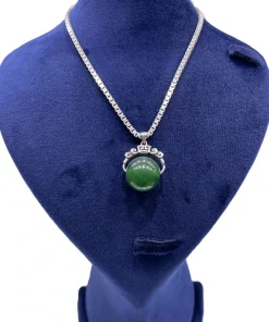 آویز گردنی زنانه نقره یشم سبز گرد  نگین های ریز اتمی بسیار با کیفیت و آب رادیوم است . کیفیت بسیار بالا و عیار ۹۲۵ است توجه داشته باشید که قیمتی که مشاهده می‌کنید بدون زنجیر است و شما میتوانید آن را با زنجیر خود و یا هر زنجیر دیگری که در سایت مشاهده میکنید ( در بخش نقره – زنجیر زنانه ) برای این کار ست کنین و زنجیری که در داخل عکس قابل مشاهده است برای نشان دادن عکس است این نیمست شامل : یک مدال گردنی