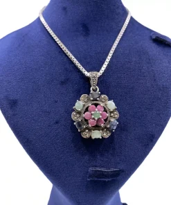 آویز گردنی نقره سنگ اصل مارکازیت یاقوت و زمرد مدل الاهه