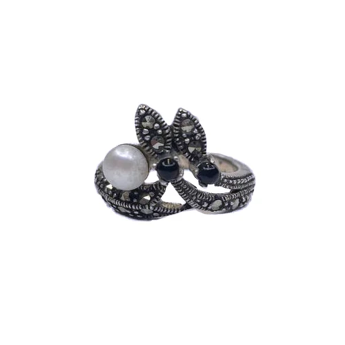 انگشتر زنانه طرح مارکازیت سیاه قلم