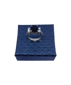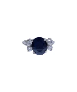 انگشتر زنانه نقره سنگ یاقوت کبود مدل بی تا