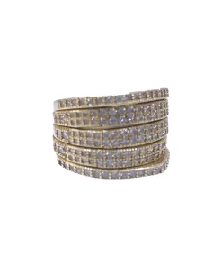 انگشتر نقره زنانه مدل لولایی با نگین های سفید اتمی رنگ طلایی