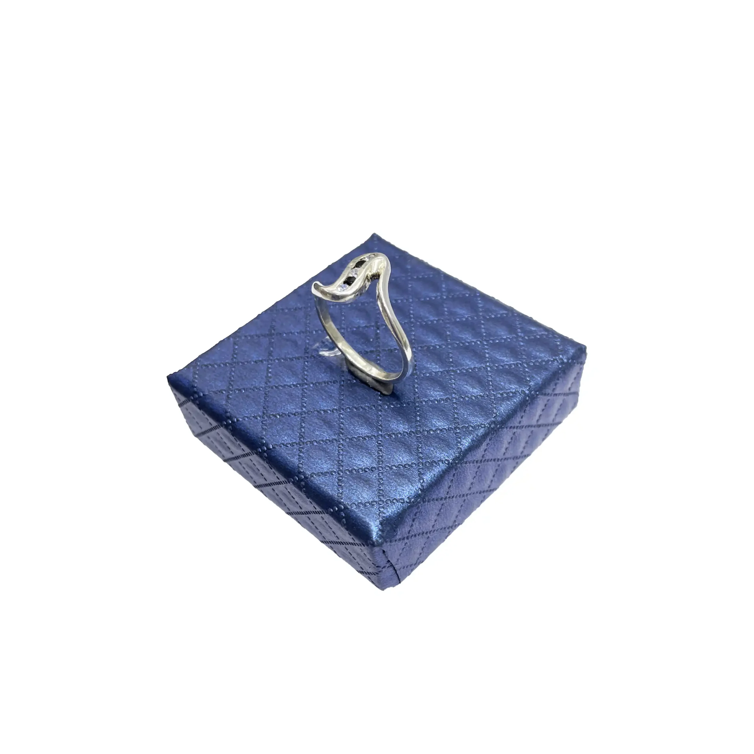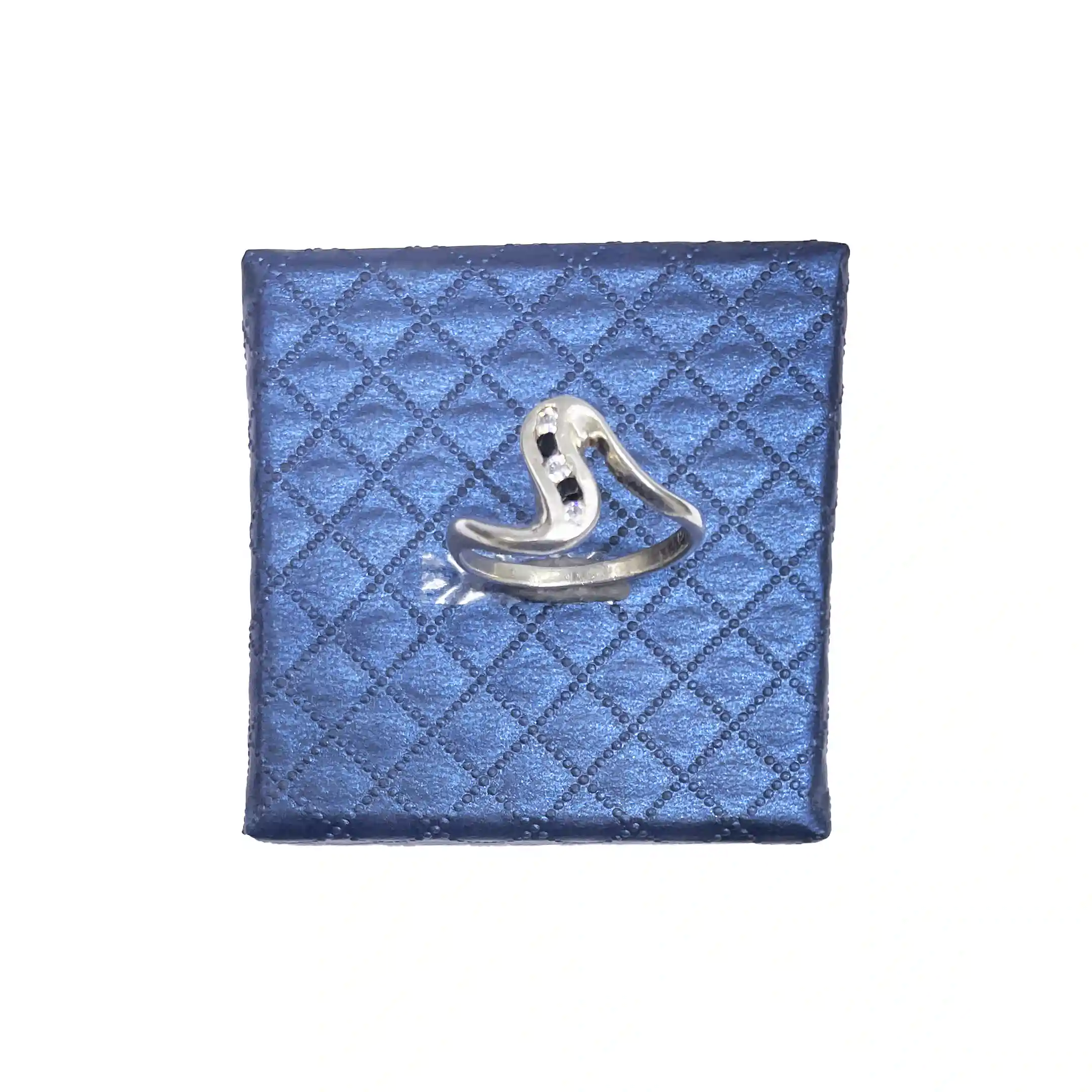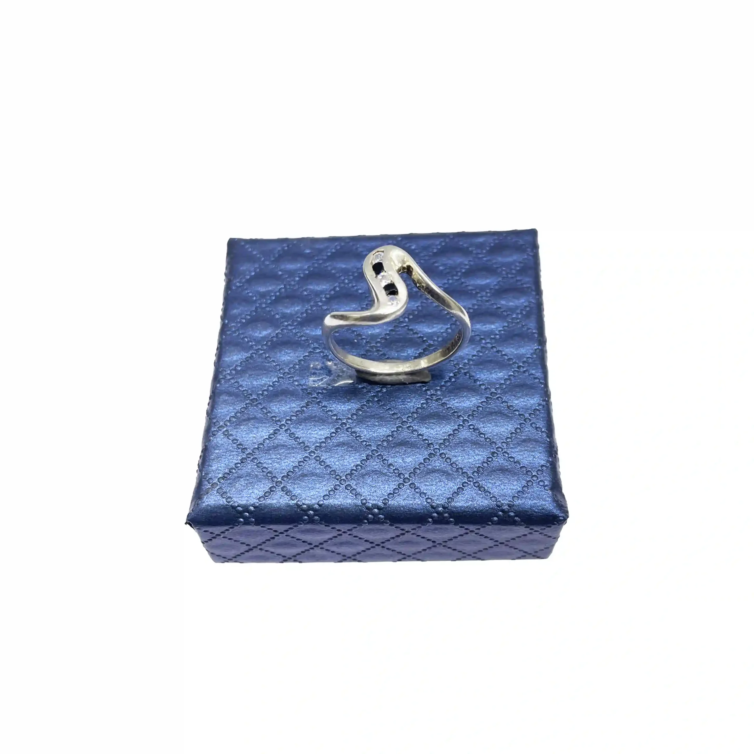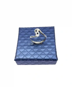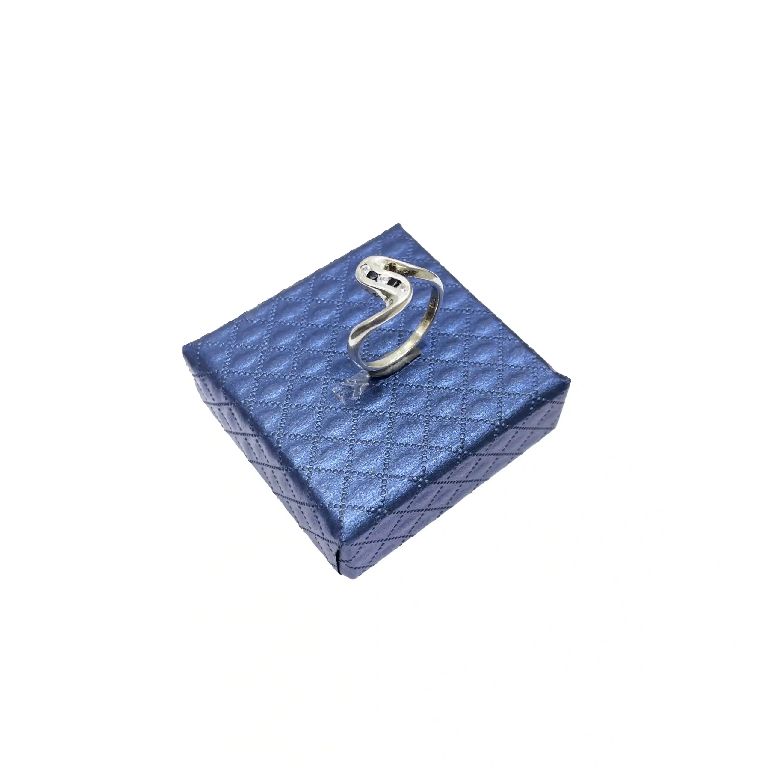 انگشتر زنانه نقره همراه با نگین های سفید و آبی اتمی