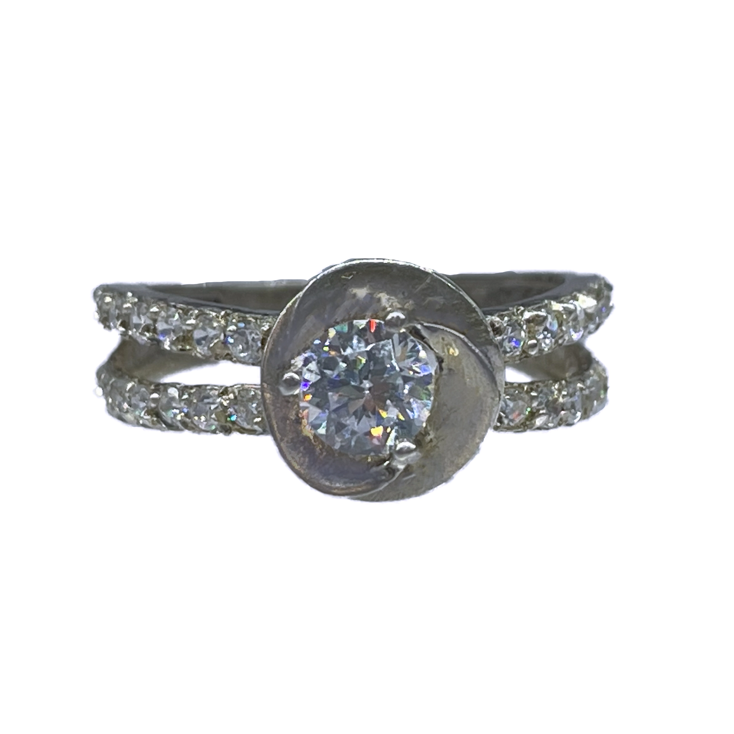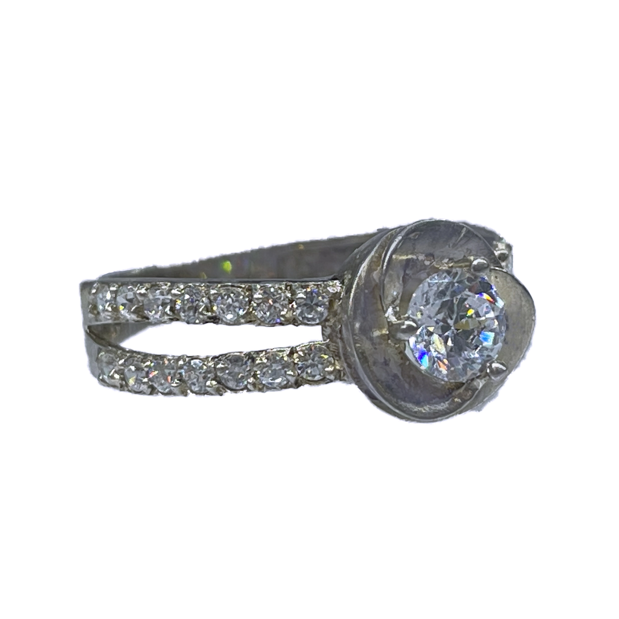 انگشتر زنانه نقره همراه با نگین سفیداتمی طرح سلیتر
