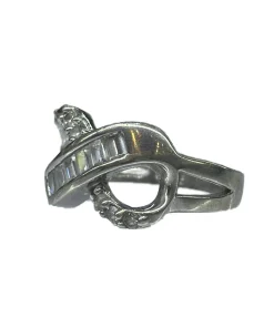 انگشتر زنانه نقره همراه با نگین سفیداتمی طرح باگت