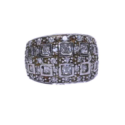انگشتر زنانه نقره همراه با نگین های سفید اتمی