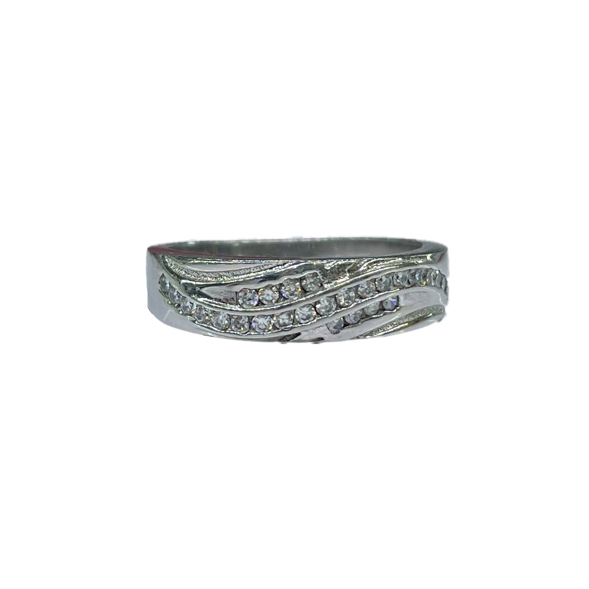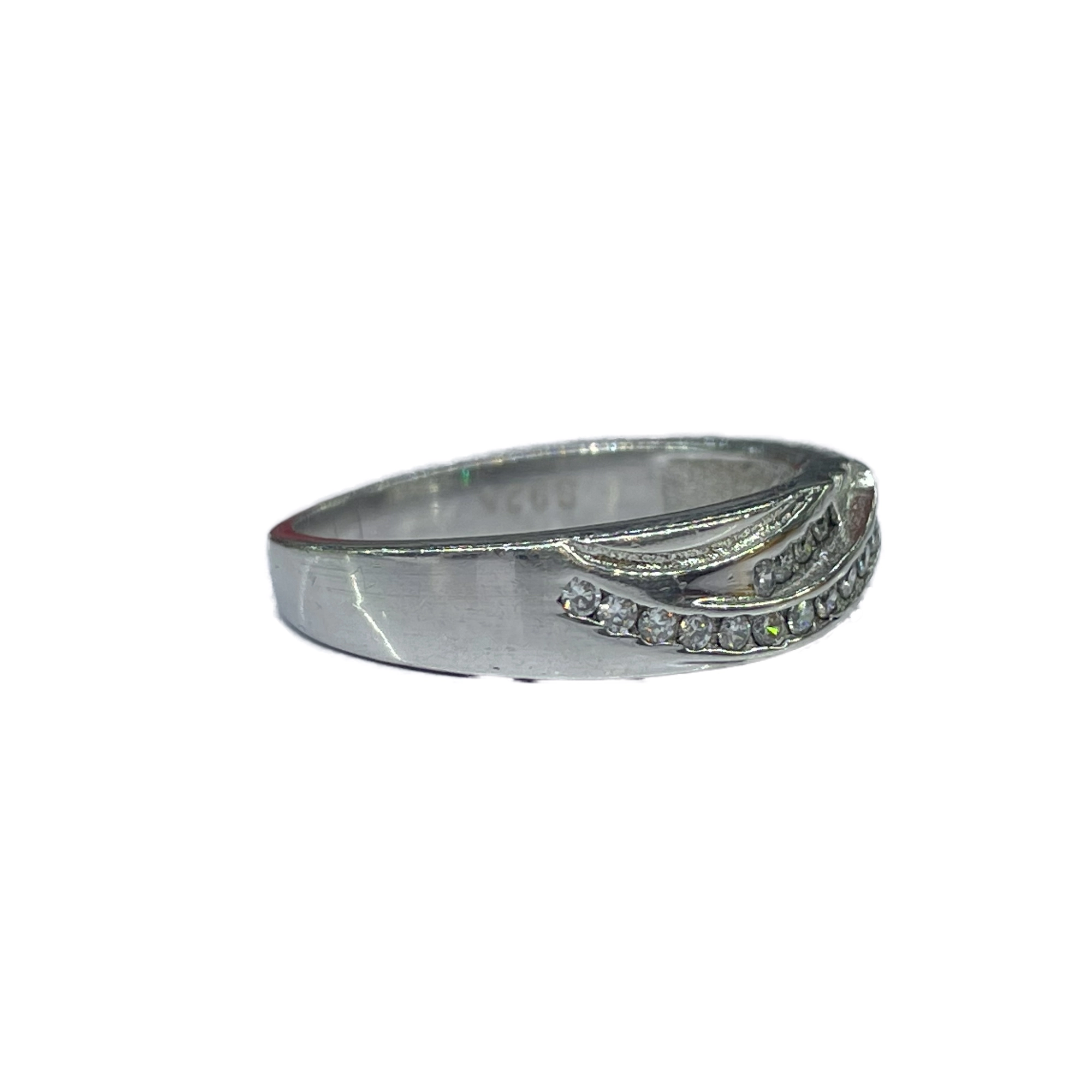 انگشتر زنانه نقره همراه با نگین های سفید اتمی