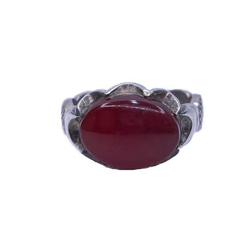 انگشتر مردانه نقره همراه با سنگ عقیق قهوه ای